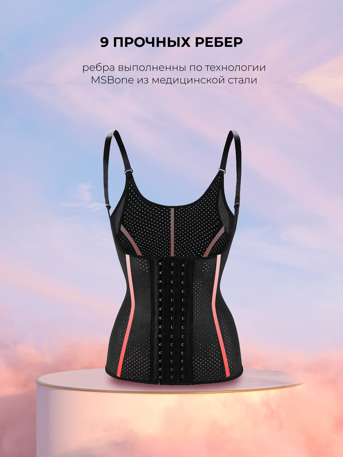 Корсет- майка – утягивающее латексное бельё с push-up эффектом для формирования фигуры, правильной осанки и пассивного похудения. Имеет 9 рёбер жёсткости, изготовленных из медицинской стали по технологии MSBone. Жёсткий корсет может использоваться для еже