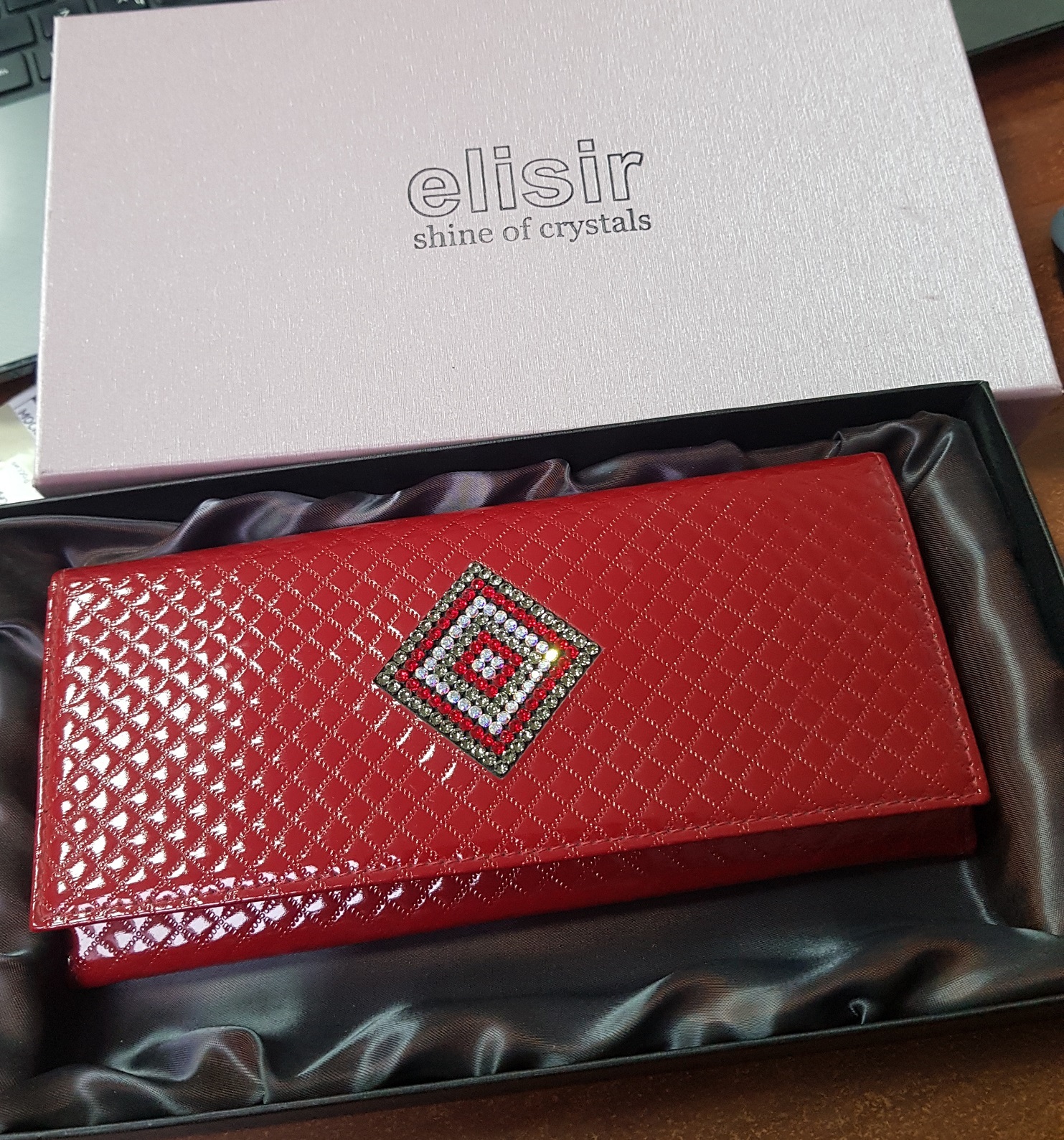 Кошелек женский из натуральной кожи, размер 19 х 9 х 3,2 см, комбинирован из двух кож разных фактур, украшен кристаллами SWAROVSKI.