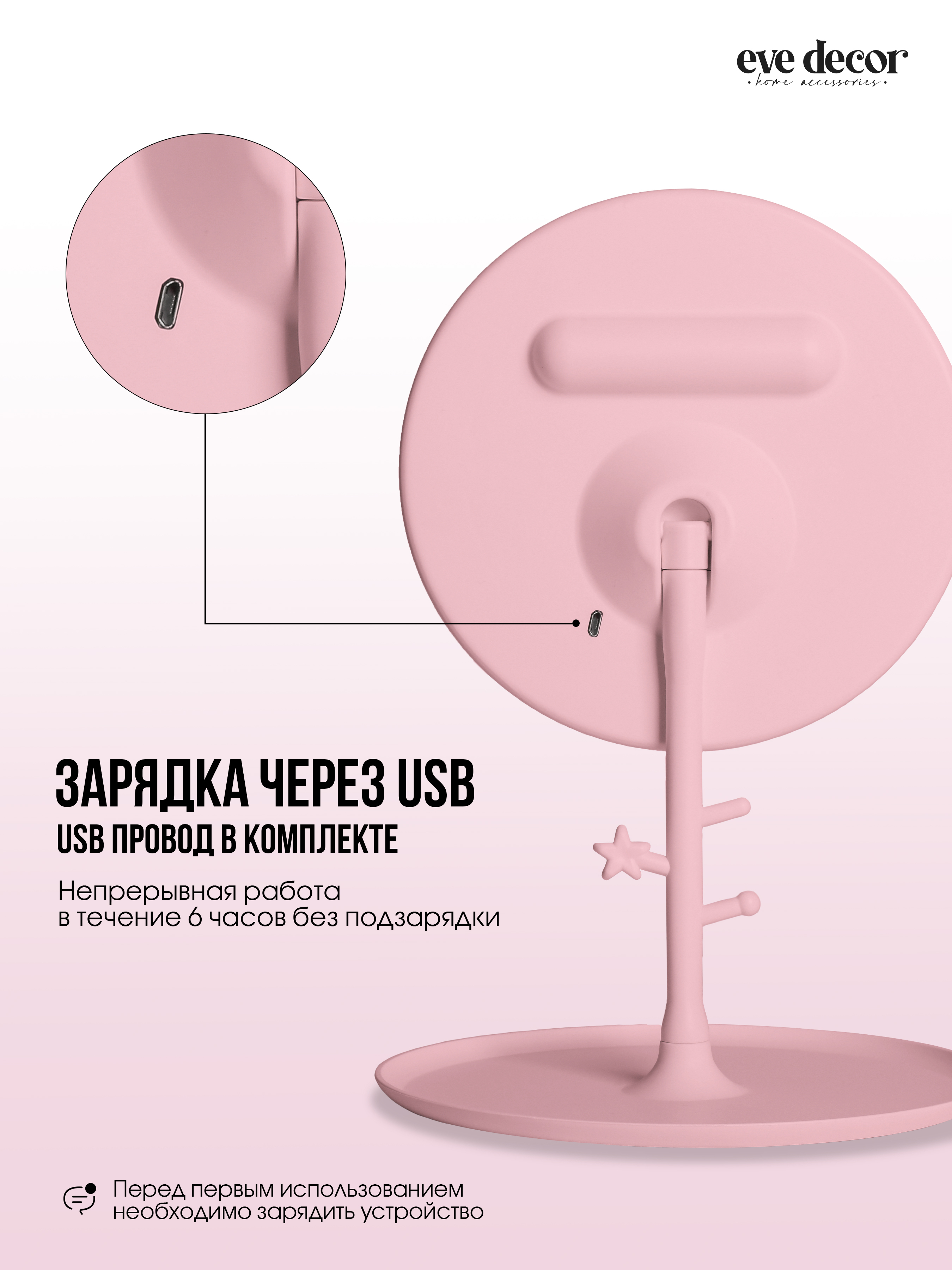 Комплектация: Зеркало с подсветкой - 1 шт., кабель для зарядки micro USB - USB - 1 шт.
