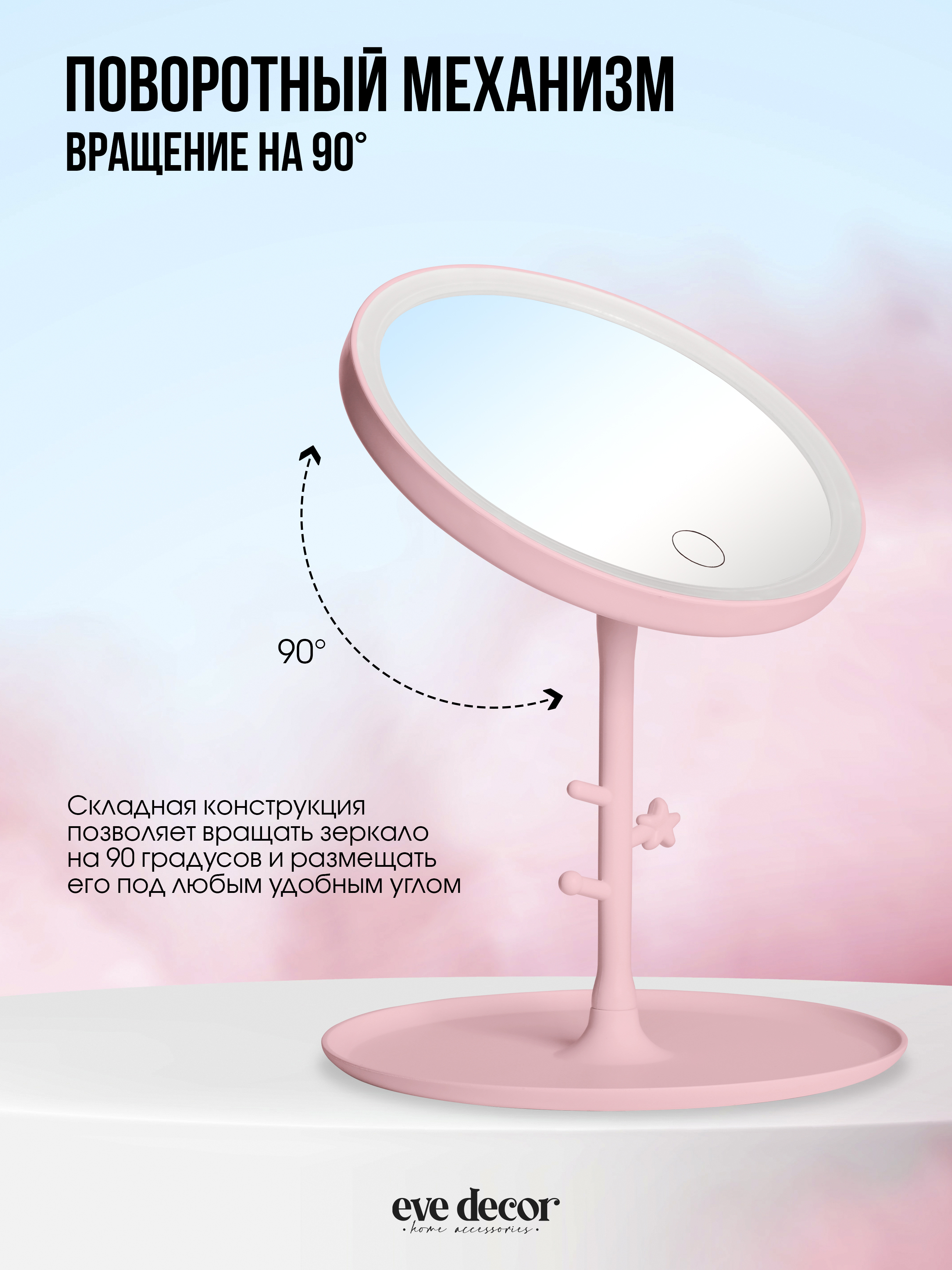 Особенности зеркалаПодсветка, Сенсорный выключатель подсветки, Поворотная конструкция, Ударопрочное