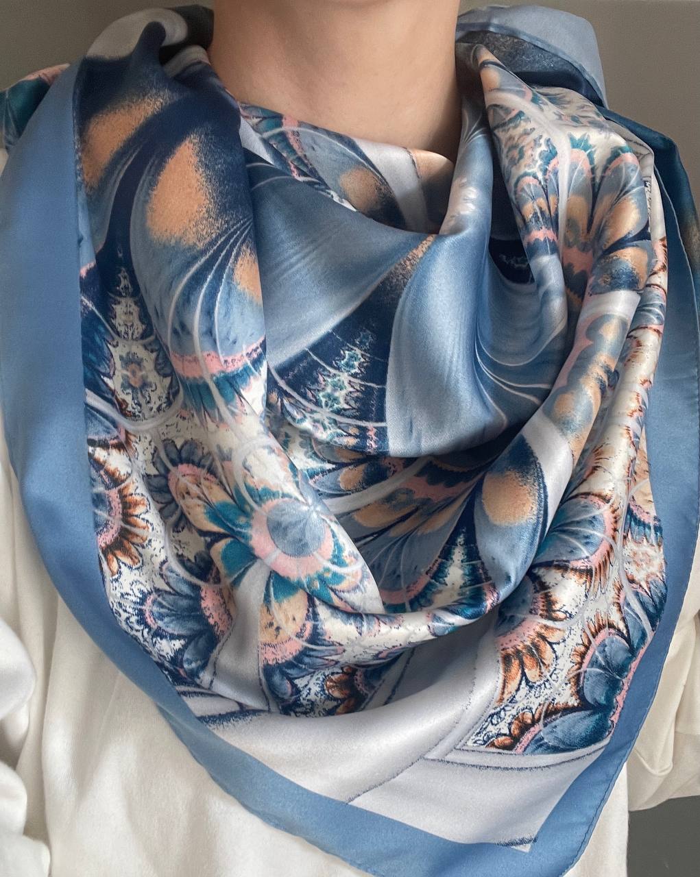 Женский платок на голову. Изысканный, нежный, стильный платок , который придает изделию неповторимый роскошный блеск и гладкость фактуры. Платок классического размера 90х90 см. Он станет незаменимым аксессуаром в Вашем гардеробе и придаст элегантность Ваш