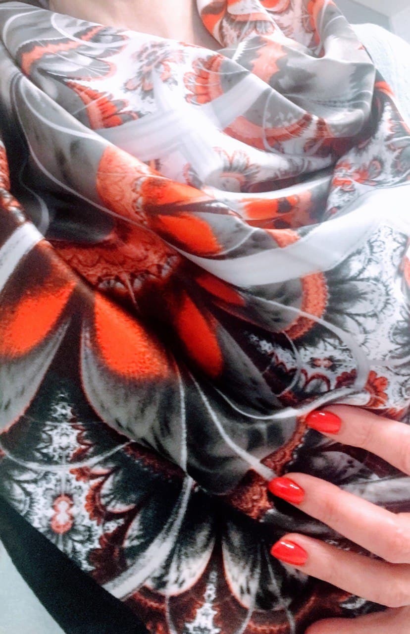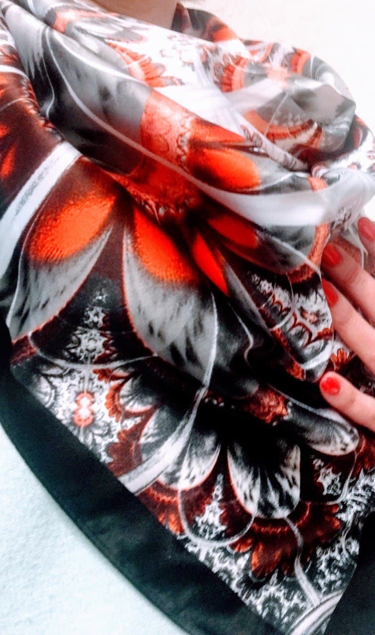 Женский шелковый платок на голову. Изысканный, Женский шелковый платок на голову. Изысканный, нежный, стильный платок выполнен из натурального шелка, который придает изделию неповторимый роскошный блеск и гладкость фактуры. Платок классического размера 90