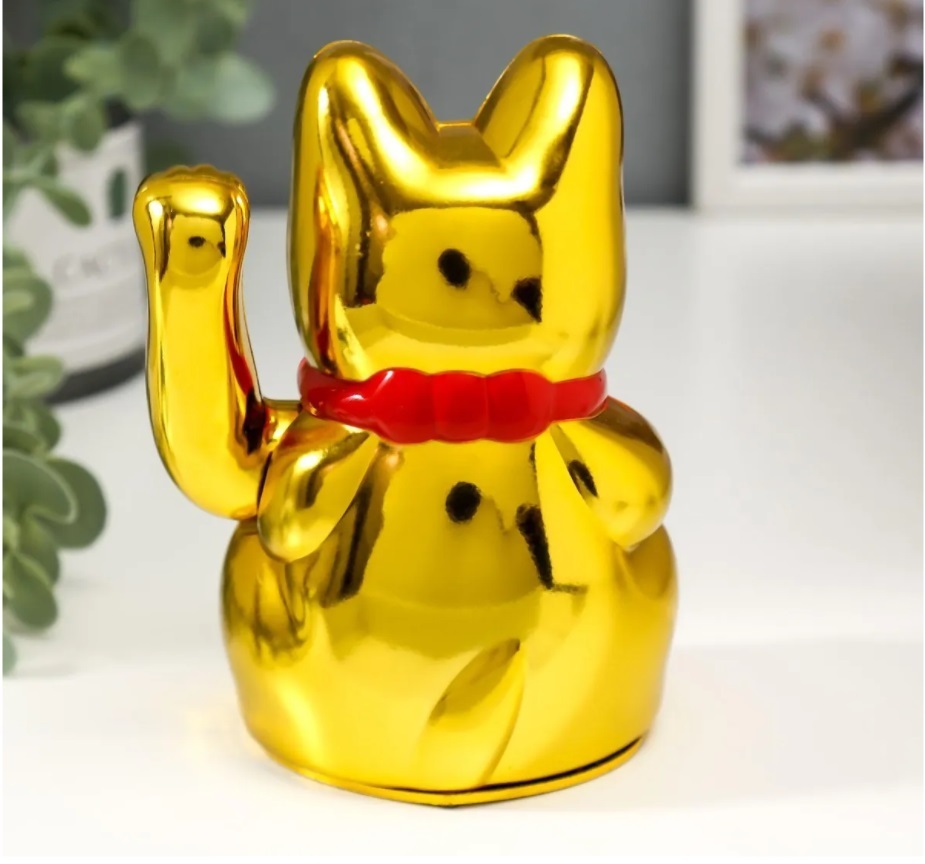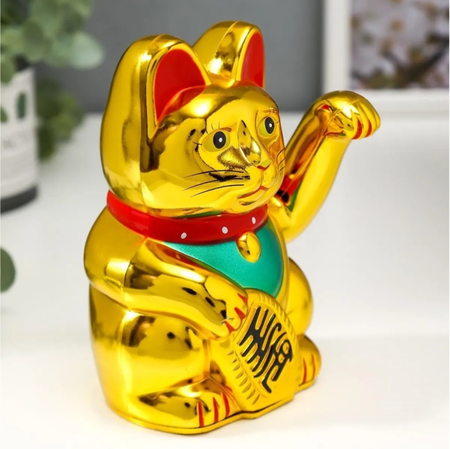 Стауэтка электрическая с движущейся рукой.Работает от 1 батерйки AA.Манэки Нэко — символ удачи, счастья, домашнего тепла, уюта и благополучия. Поднятая вверх лапка кошки приманивает эти радости в дом.Распологать статуэтки котов лучше всего парами.Одни кош