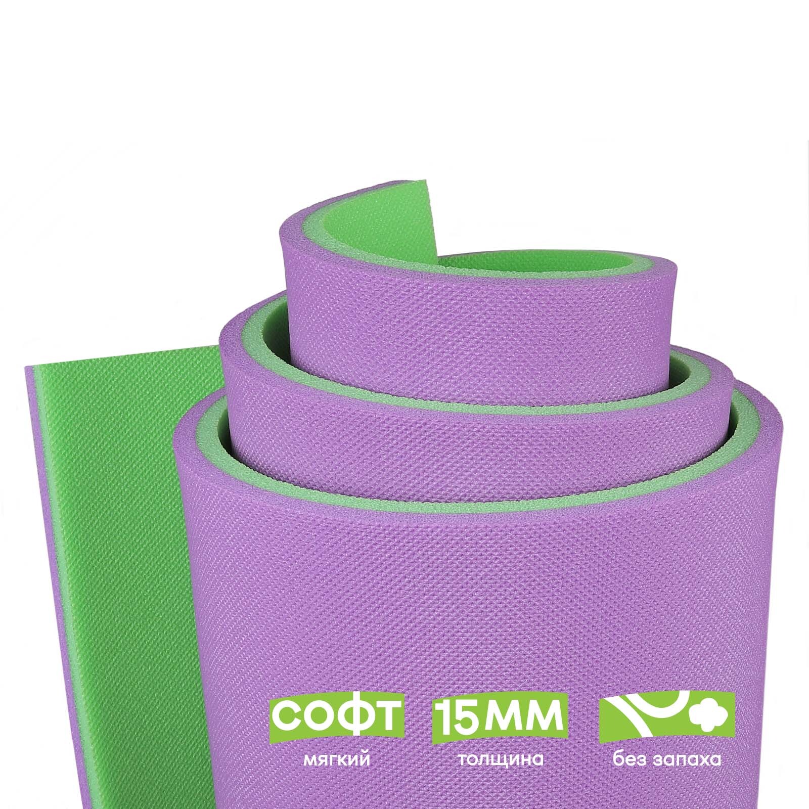 Комплектация:ремешокОписание:Коврик для занятий спортом дома и на открытом воздухе из экологичного полимерного материала. Подходит для пилатеса, расслабляющих практик йоги или для зарядки. Толщина коврика 15 мм обеспечивает мягкое и комфортное покрытие. Д