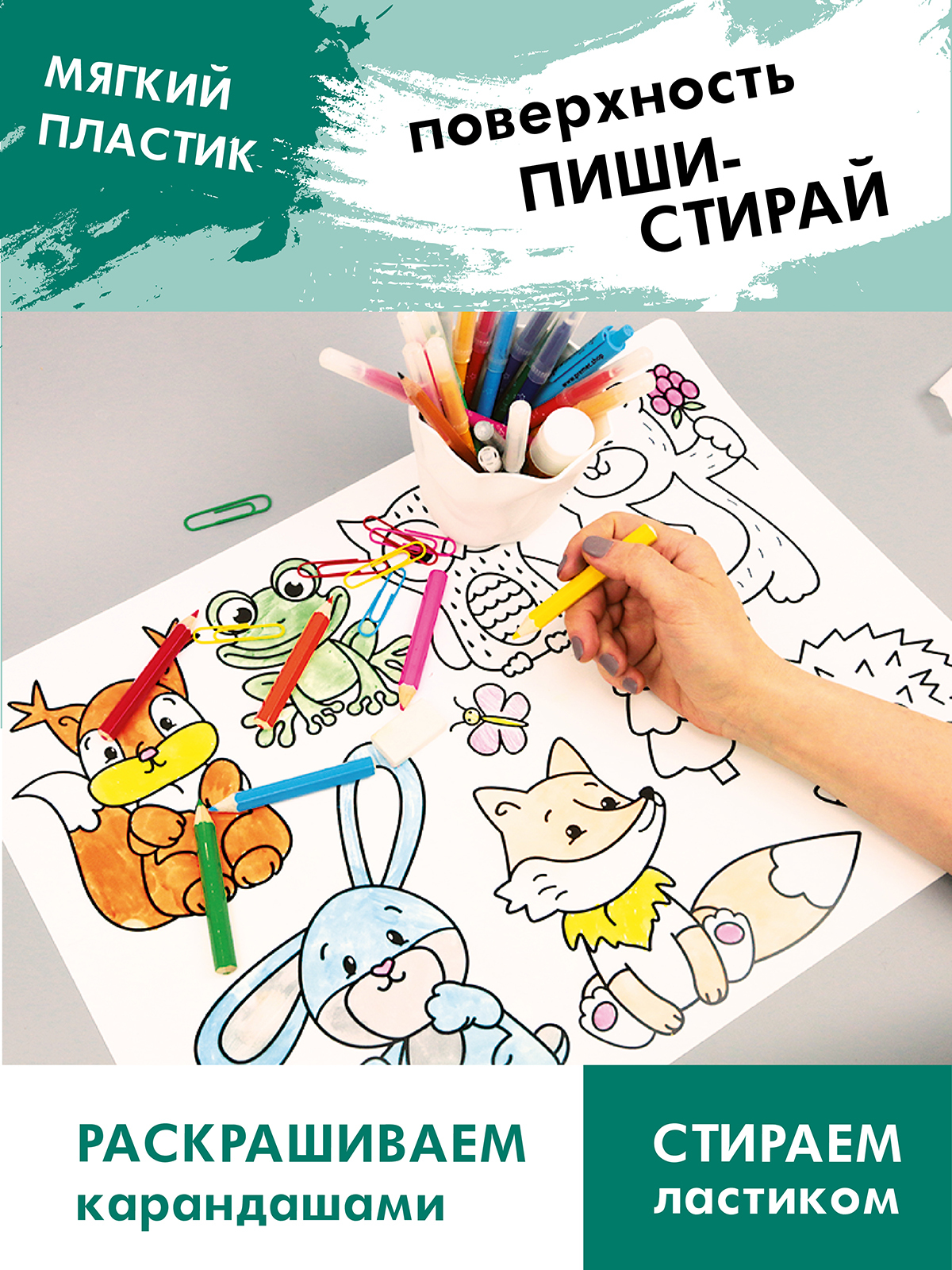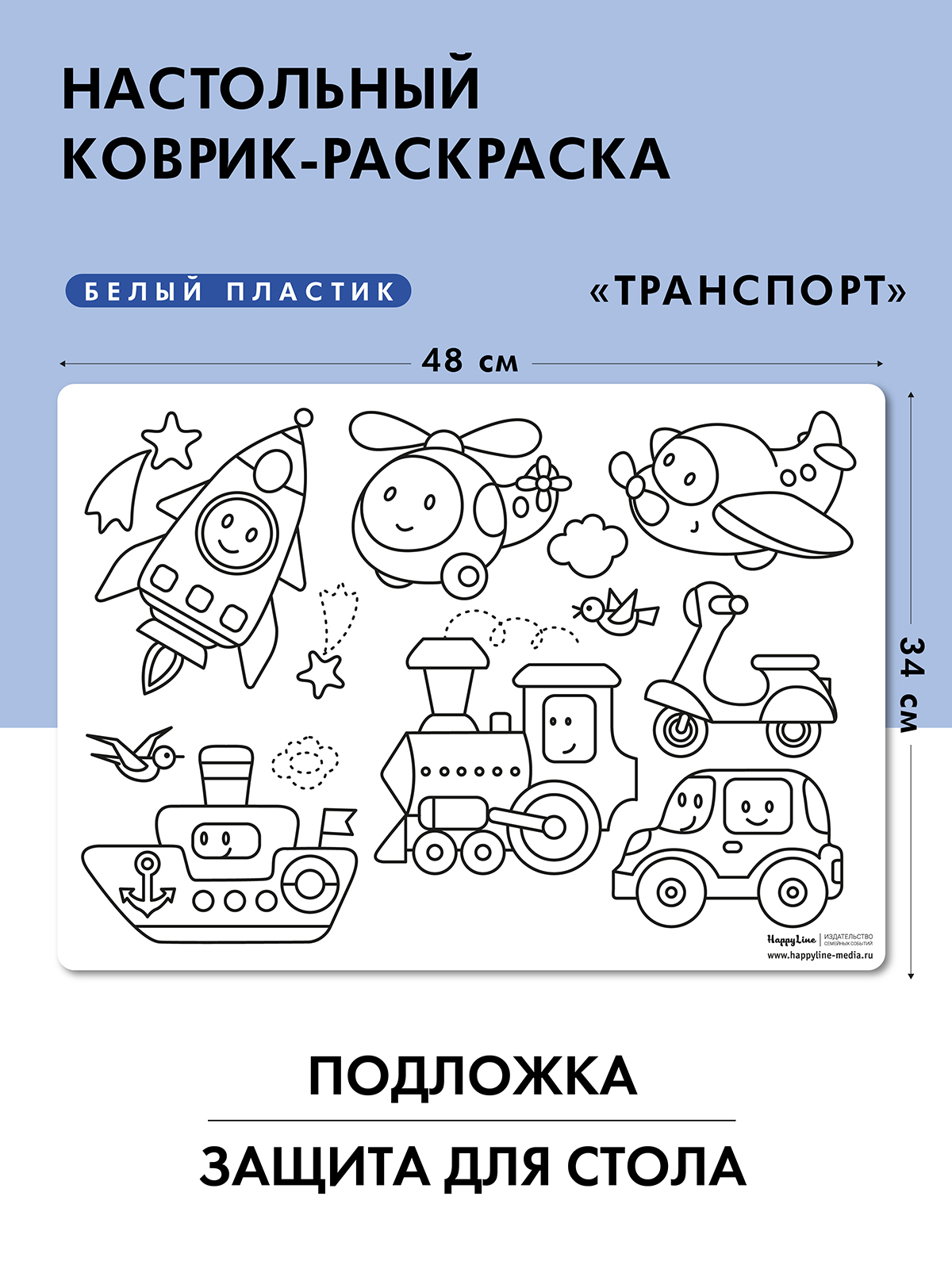 Многофункциональный коврик-раскраска защитит поверхность стола от загрязнений и царапин: просто постелите его на обеденный или рабочий стол вашего ребенка.Размер коврика: 500 х 350 мм.Сказочные персонажи любимых мультфильмов от Disney увлекут малыша проце