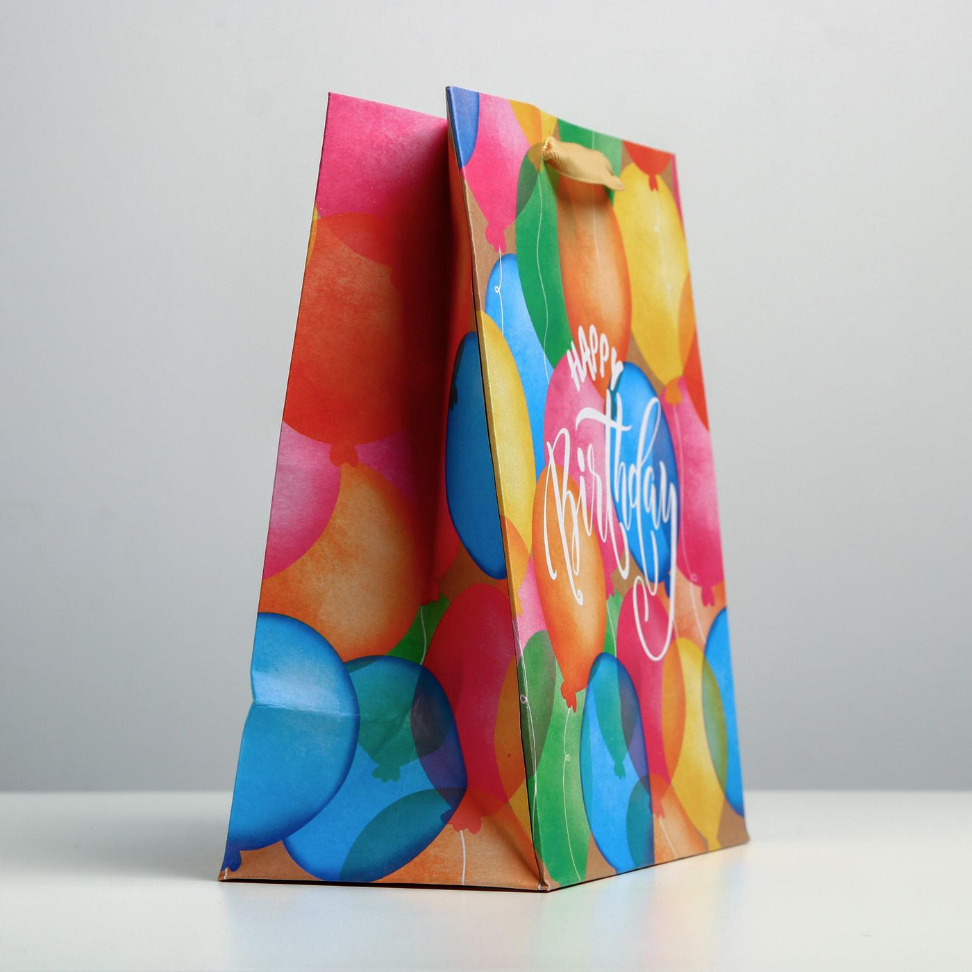Комплектация:Пакет крафтовый 18х23х10 см - 1штОписание:Яркий подарочный крафтовый пакет с принтом "Воздушные шары" и надписью "Happy Birthday" - идеальная подарочная упаковка для подарков и сувениров на день рождения ребенку или взрослому! Пакет выглядит
