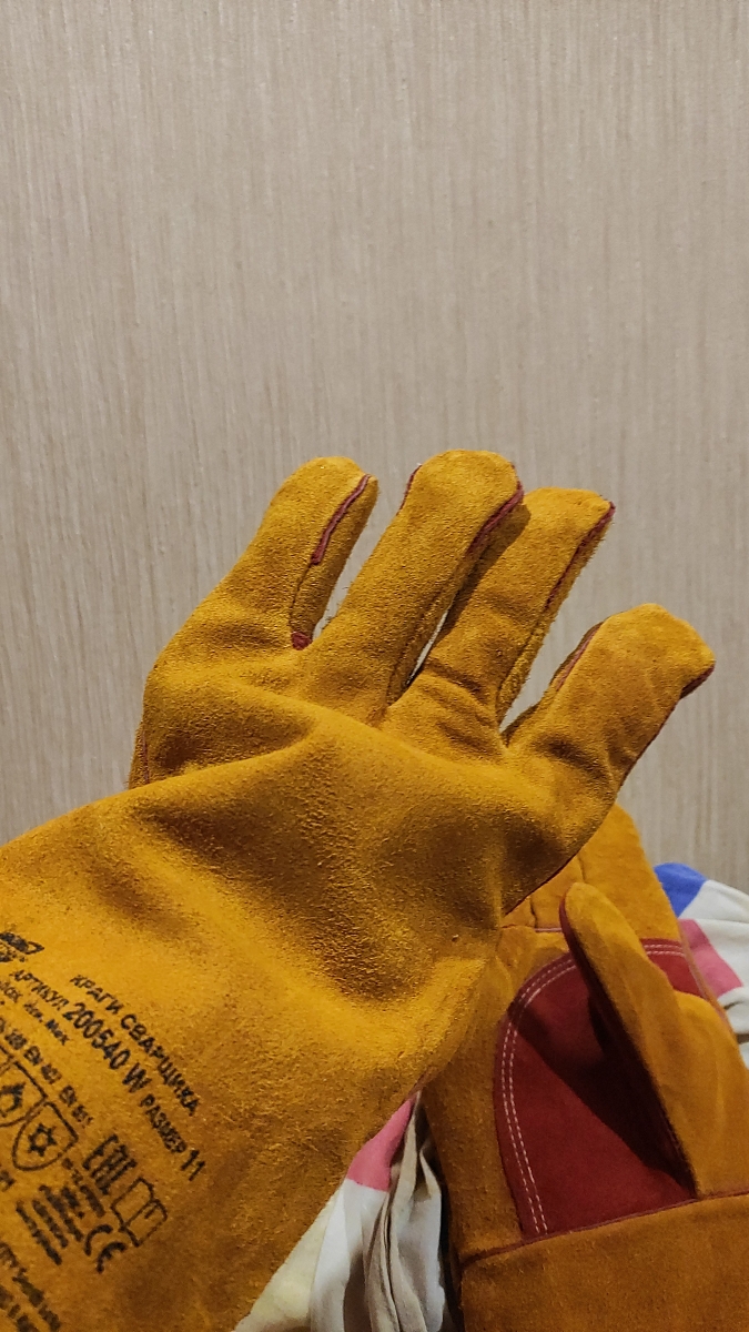 Arcticus 200540W - экстрапрочные пятипалые, зимние краги сварщика, с дополнительным усилением ладони и большого пальца, изготовлены из бычьего спилка (более прочного, чем, например, говяжий) толщиной 1,2-1,4 мм, класса А. Подкладка из искуственного меха.
