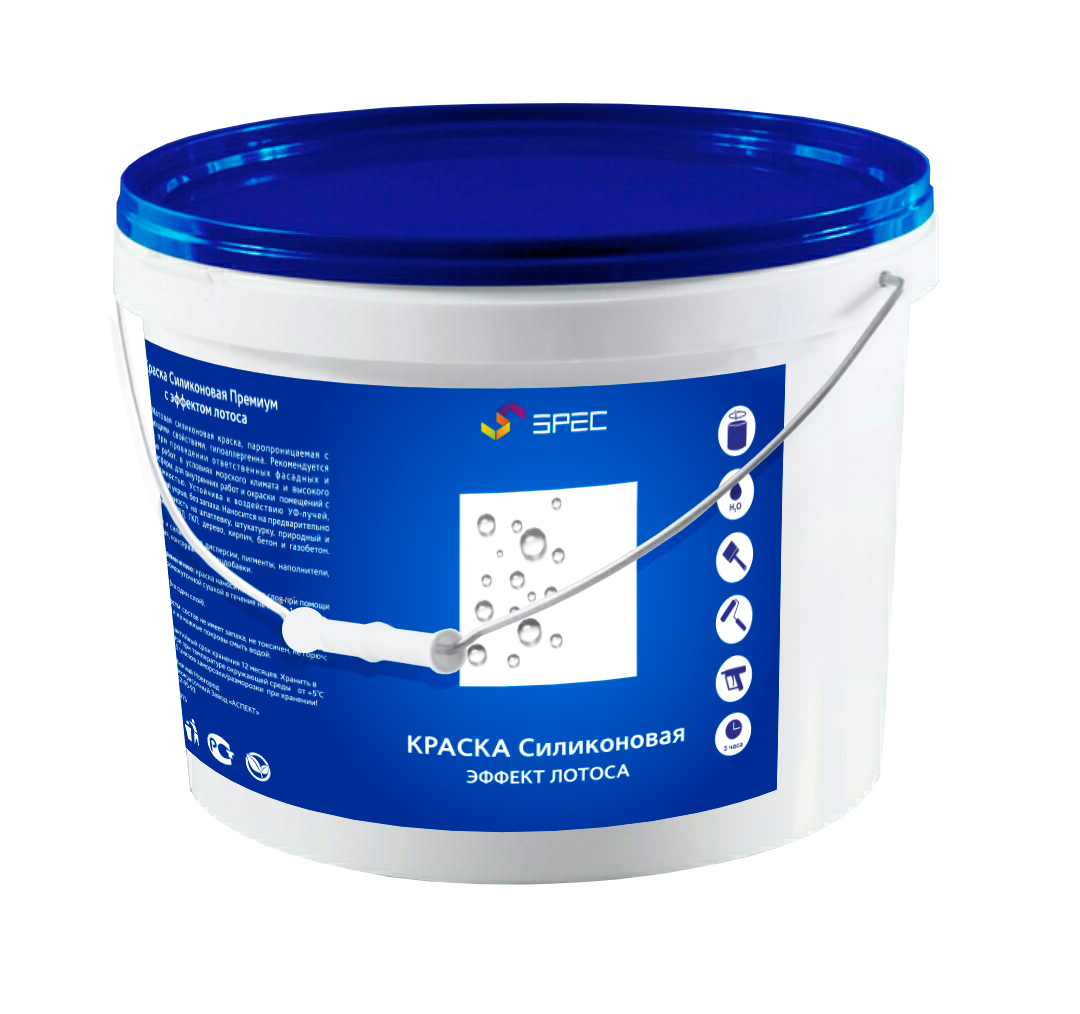 Силиконовая краска — это граничный финишный слой, отделяющий стеновые материалы от эксплуатационного контакта с влагой, пыли, действием температур и прочими проявлениями. Основа Силиконовой краски «SPEC» — водная эмульсия силиконовых смол. Это означает, ч
