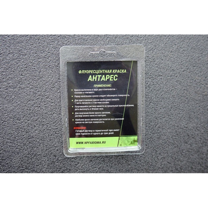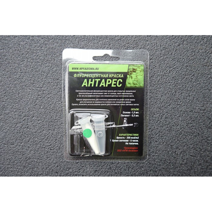 Краска светящаяся Антарес для открытых прицельных приспособлений, зел. 2,5 мл. Краска Антарес - флуорисцентная краска, предназначенная для точечного нанесения мушку и целик с целью улучшения их видимости в условиях плохой освещенности. Так же данную краск