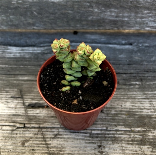 Крассула Том Тумб – очаровательное миниатюрное суккулентное растение, высотой до 20 см, с крошечными треугольными листьями в противоположных рядах на стеблях.Уход за растением:Освещённость. Хорошо растет при ярком свете солнце, а еще при ярком, но рассеян