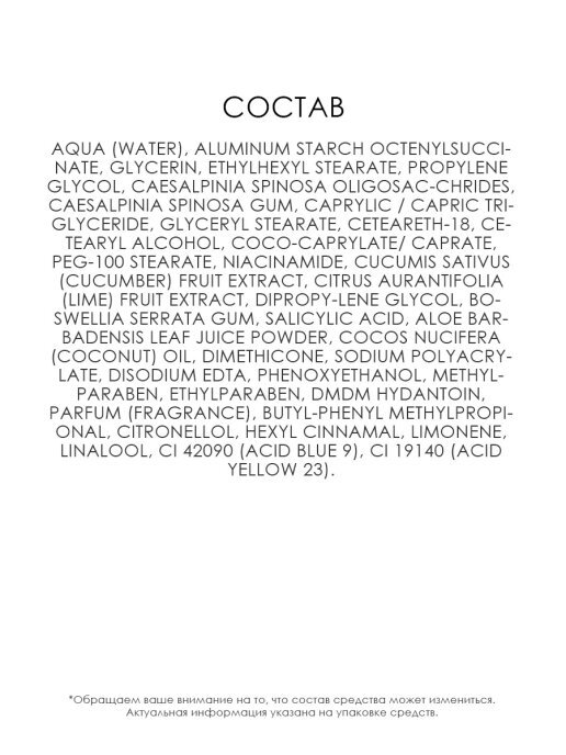 Эффект от использования уходовой косметикиУвлажнение, Матирование, Устранение высыпаний