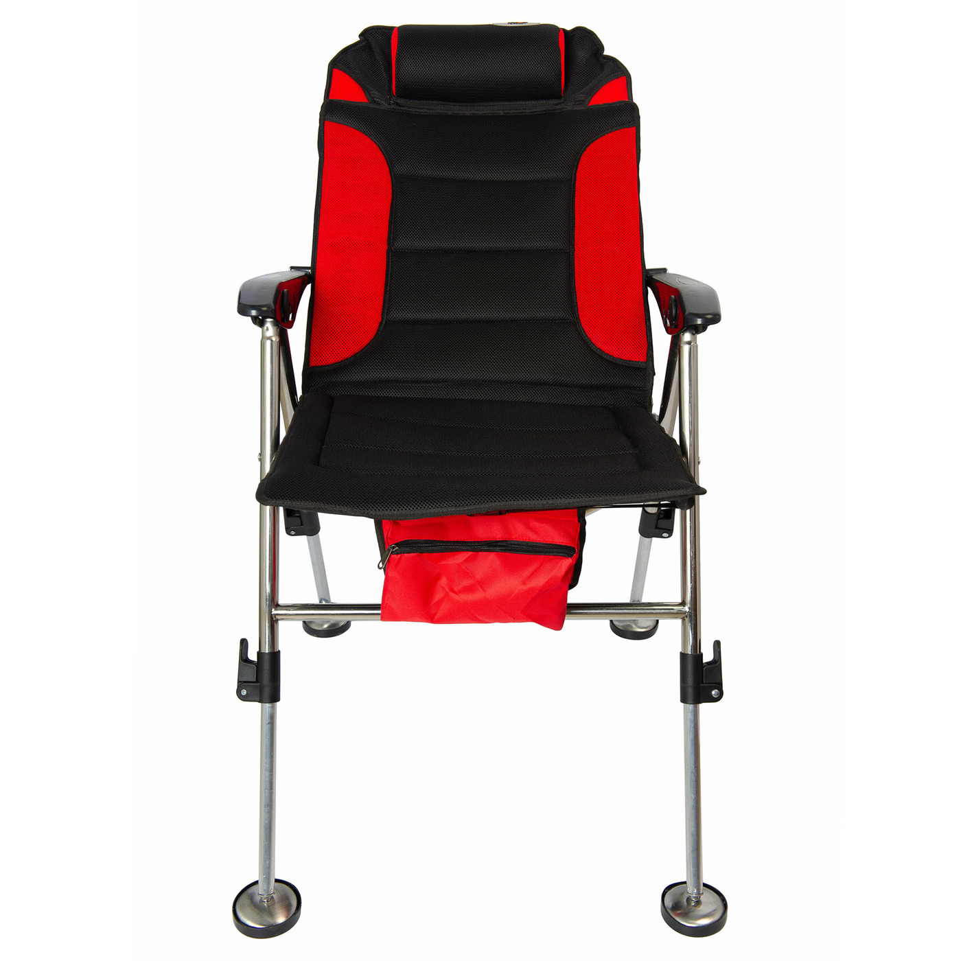 Карповое (фидерное) кресло с регулировкой наклона на подлокотникахМаксимальная нагрузка (кг): 150 кг;Материал ткани: 600D polyester (Усиленный) + Водоотталкивающее покрытие на обратной стороне ткани;Каркас: Сталь;Спинка высота: 70 см;Телескоп ножек (выдви