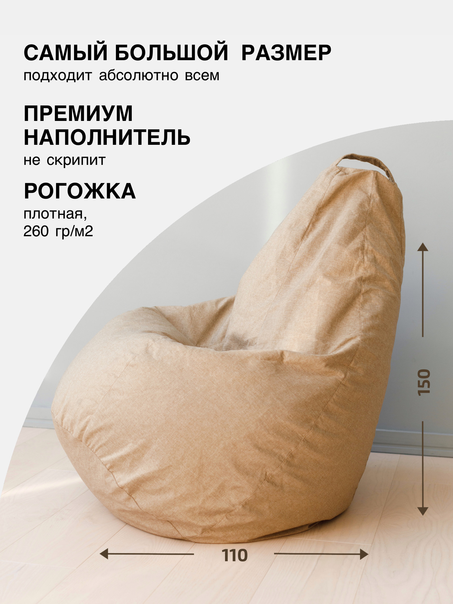 Легкое и мегаудобное кресло-мешок прекрасно впишется в любой интерьер. Кресло моментально подстраивается под форму тела, помогая расслабиться.✔️ Размер кресла по чехлу 4XL 150*110 см - подходит для всех взрослых✔️ Внешний чехол сделан из Рогожки. Ткань мя