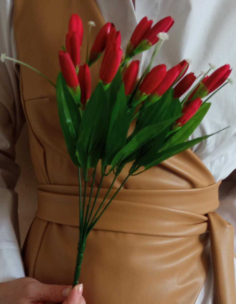 Комплектация:1Описание:Букет искусственных цветов. Состоит из 18-ти бутонов . Высота букета 35 см +/- 1 см. ВНИМАНИЕ! После транспортировки для распрямления цветков , ОБЯЗАТЕЛЬНО нужно подержать ветку над паром горячей воды в течении 1-2 минут.