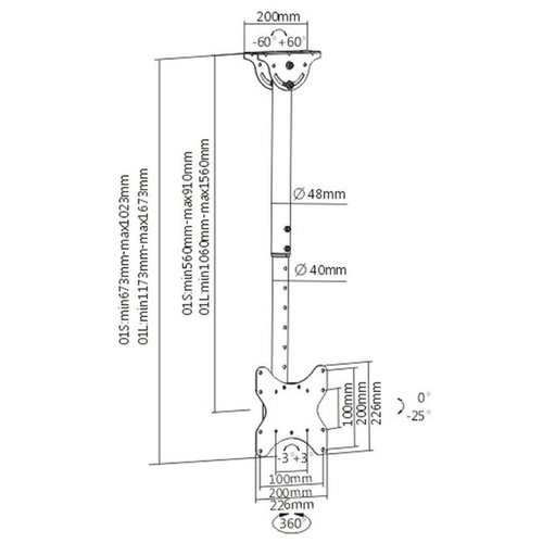 Дополнительная информациярегулировка наклона 0-25º и угла поворота ±180º