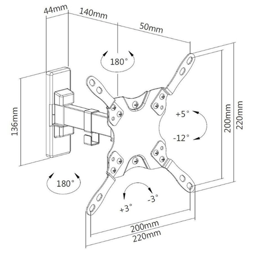 Дополнительная информациянаклон до 12 градусов, подъем до 5 градусов,поворот ±90 градусов