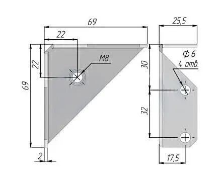Основное применение: для соединения каркаса кровати и поддержки ортопедического основанияМатериал: сталь (оцинкованная)Отверстие с резьбой М8 позволяет крепить регулируемые, декоративные и колесные опорыКомплектация:Кронштейн-уголок кроватный - 2 шт