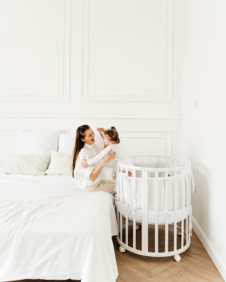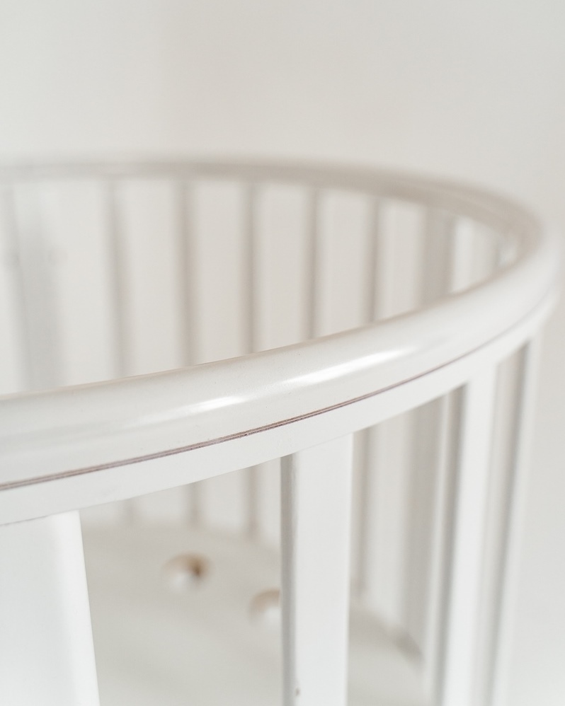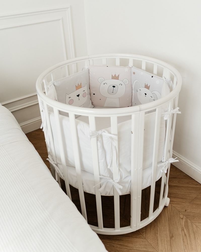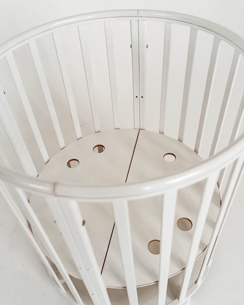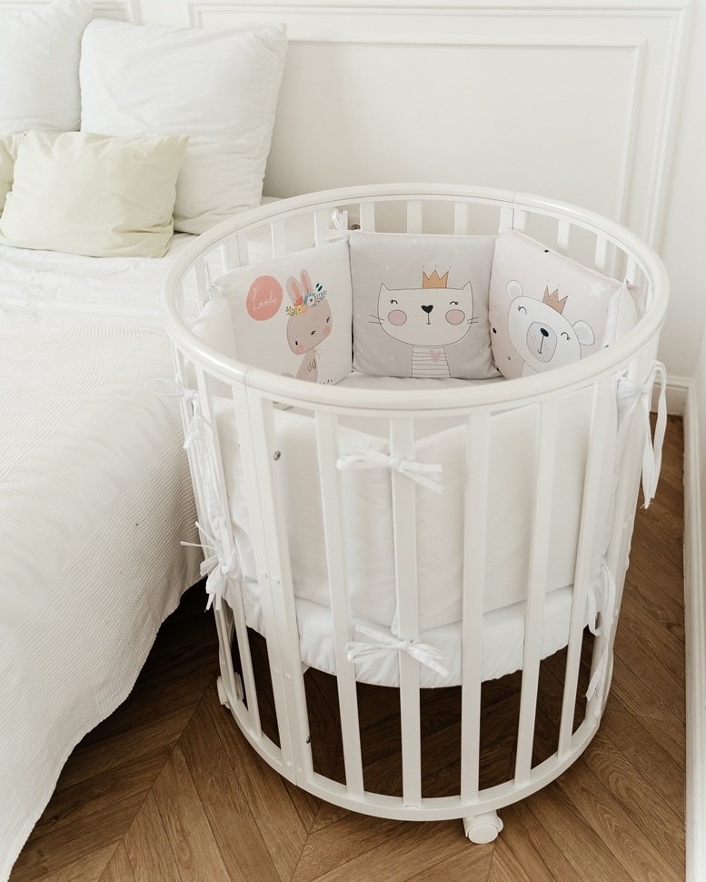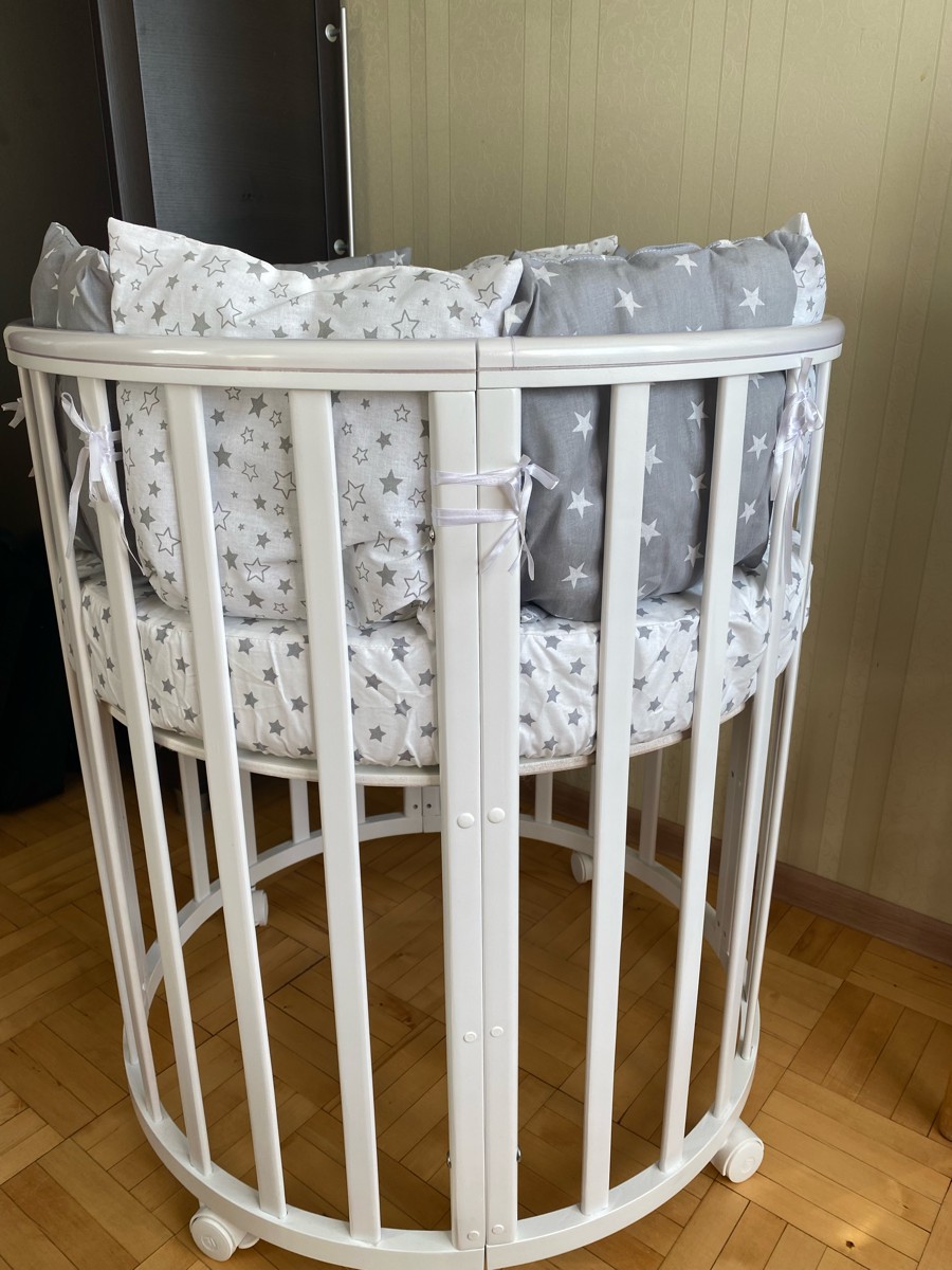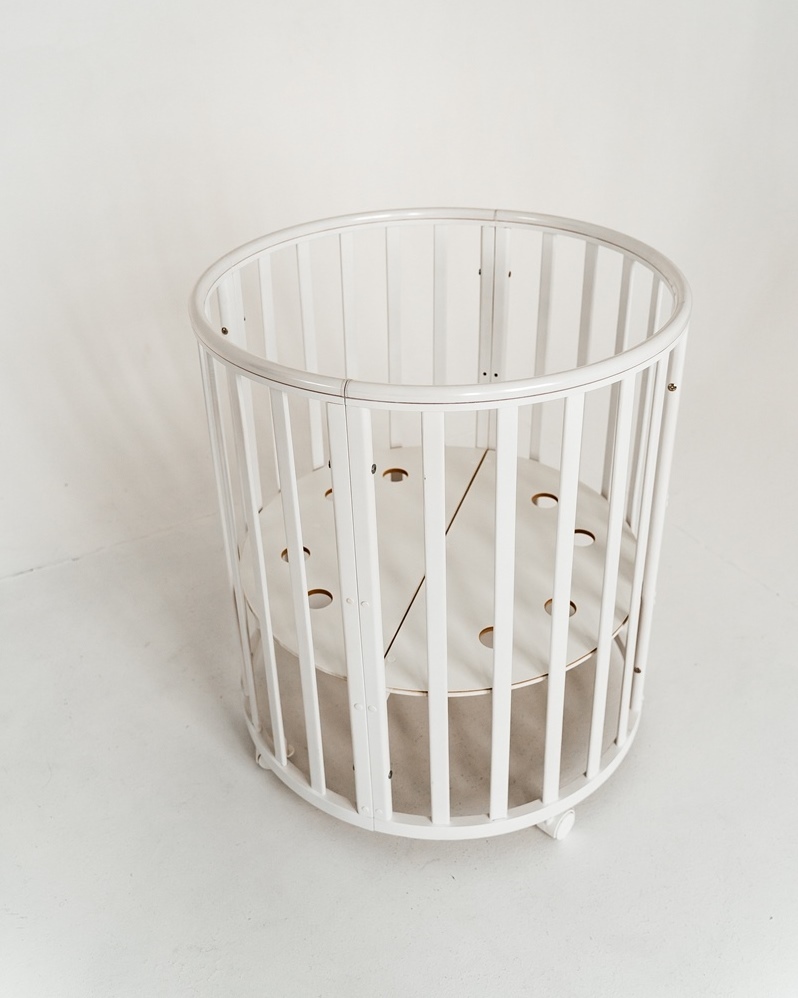 Дополнительно:Круглая кроватка трансформер для новорожденных Incanto MimiОписание:Круглая кровать детская Лисенок Lili 7в1 круг-овал с накладкой ПВХ. К кровати подходит маятник, который продается отдельно.Трансформации кроватки:1. Колыбель для младенца ра