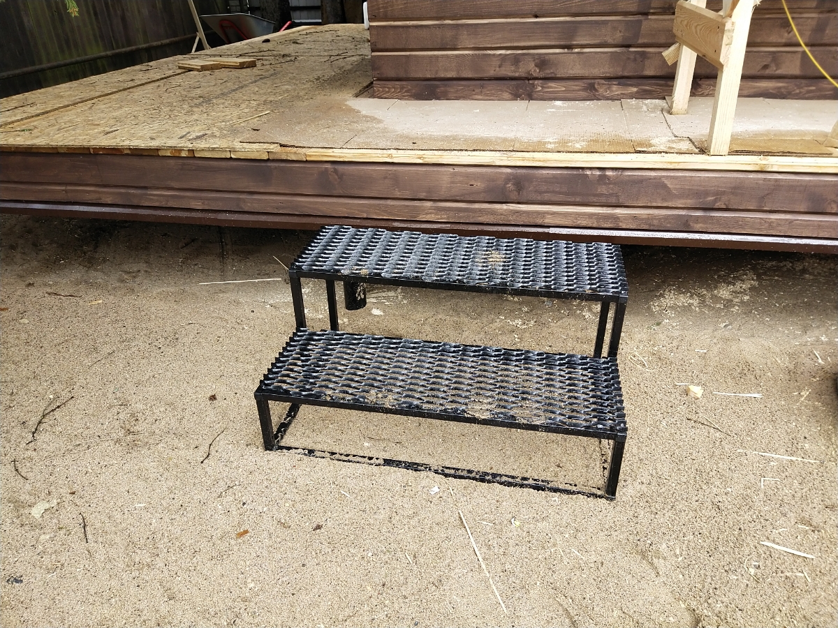 Крыльцо к дому 1 ступень с террасной доской.Габариты: ШхГхВ.-1000 х 300 х 230 мм. Проф. труба 25 х 25 мм.Глубина ступени 300 мм.покраска порошковая полимерная!Доска террасная лиственница не крашенная 28 х 140 мм.Крепеж в комплекте.Вес изделия 8 кг.