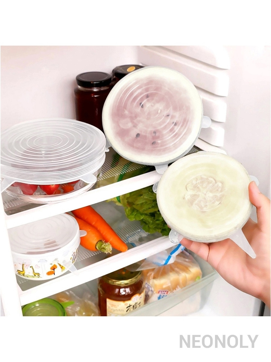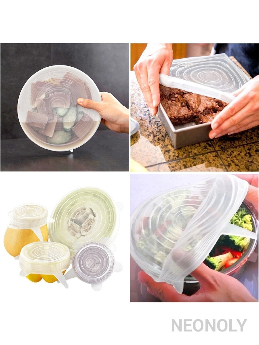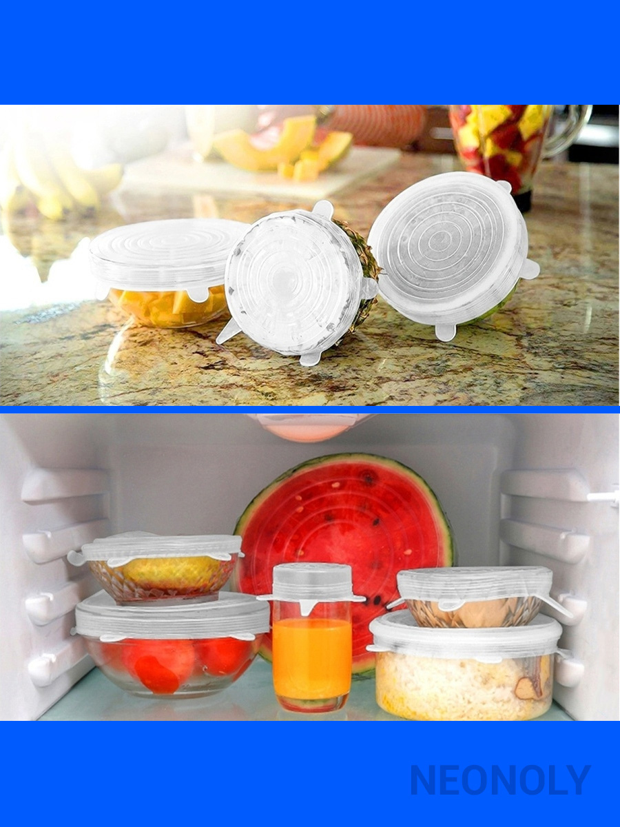 Комплектация:Набор крышек 6 штОписание:Умные силиконовые растягивающиеся крышки NEONOLY для тарелок, кастрюль, банок, контейнеров, а также на сами продукты, например, на половинку арбуза или дыни. Крышки прочные и эластичные, плотно прилегают к посуде или