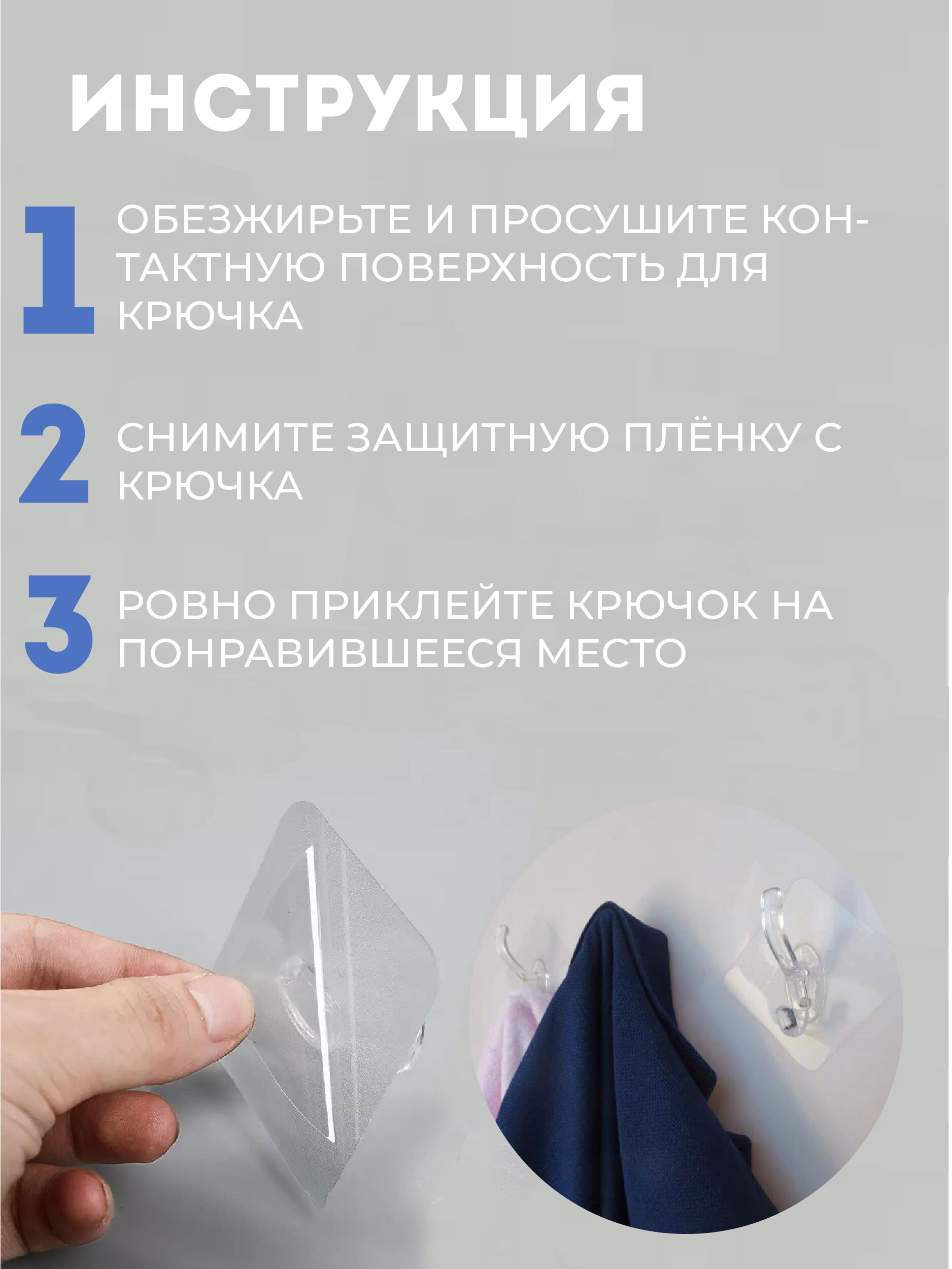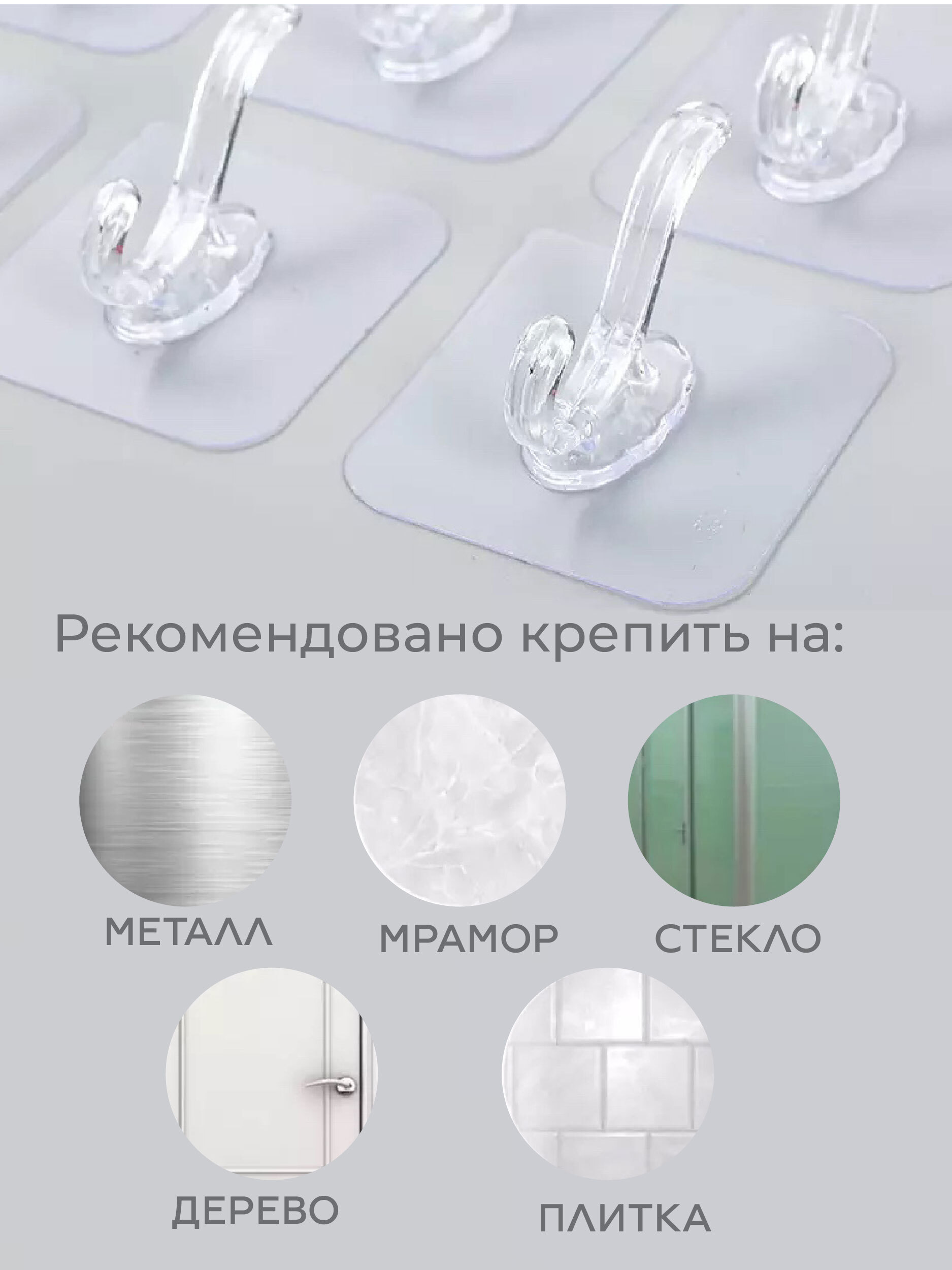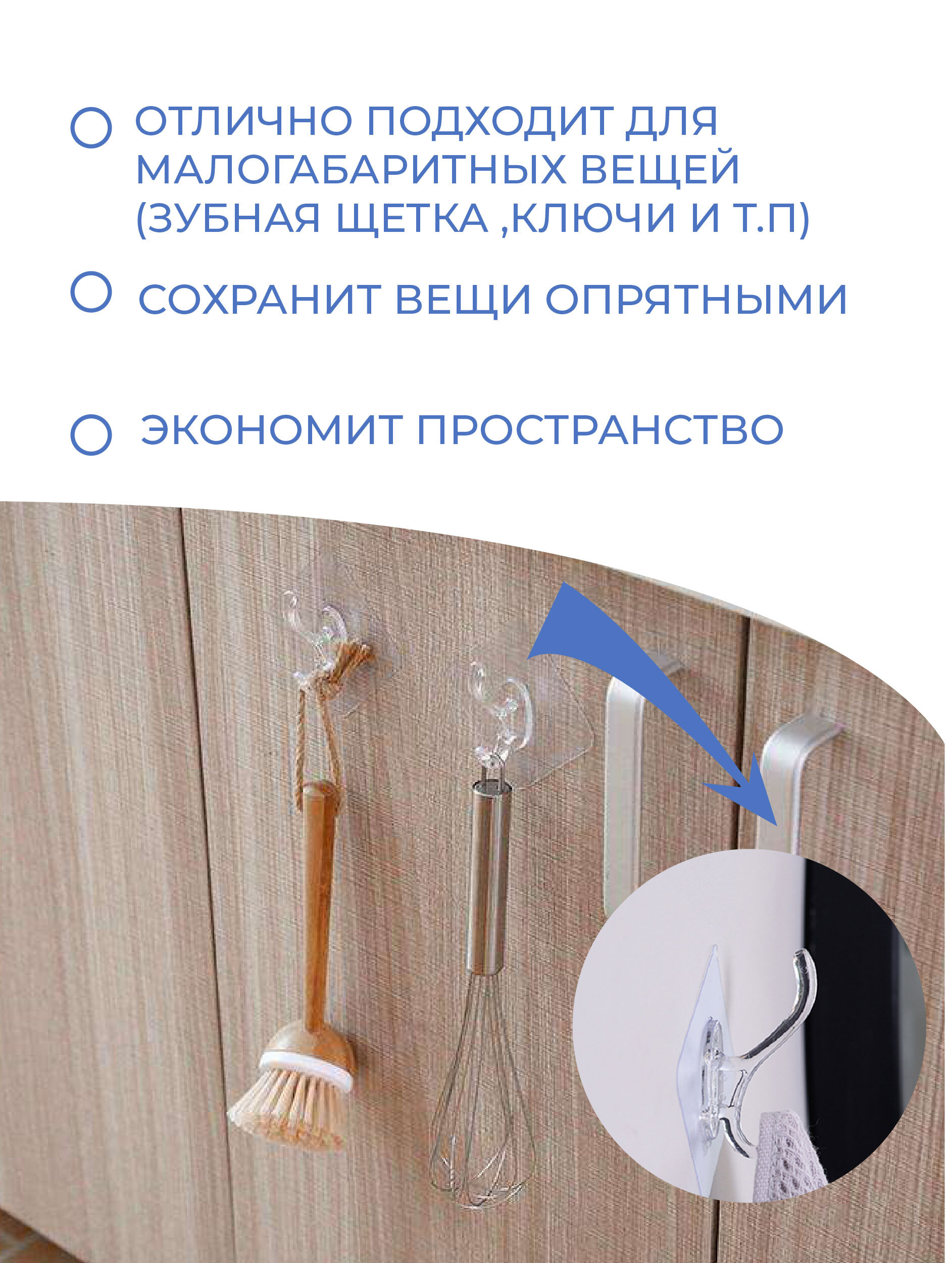 Комплектация:Крючок - 10 шт.Описание:Самоклеящийся настенный крючок не займет много места в вашей ванной комнате, но легко поможет организовать пространство. Банные принадлежности, провода, вилки, мобильный телефон и прочие мелочи всегда будут у вас под р
