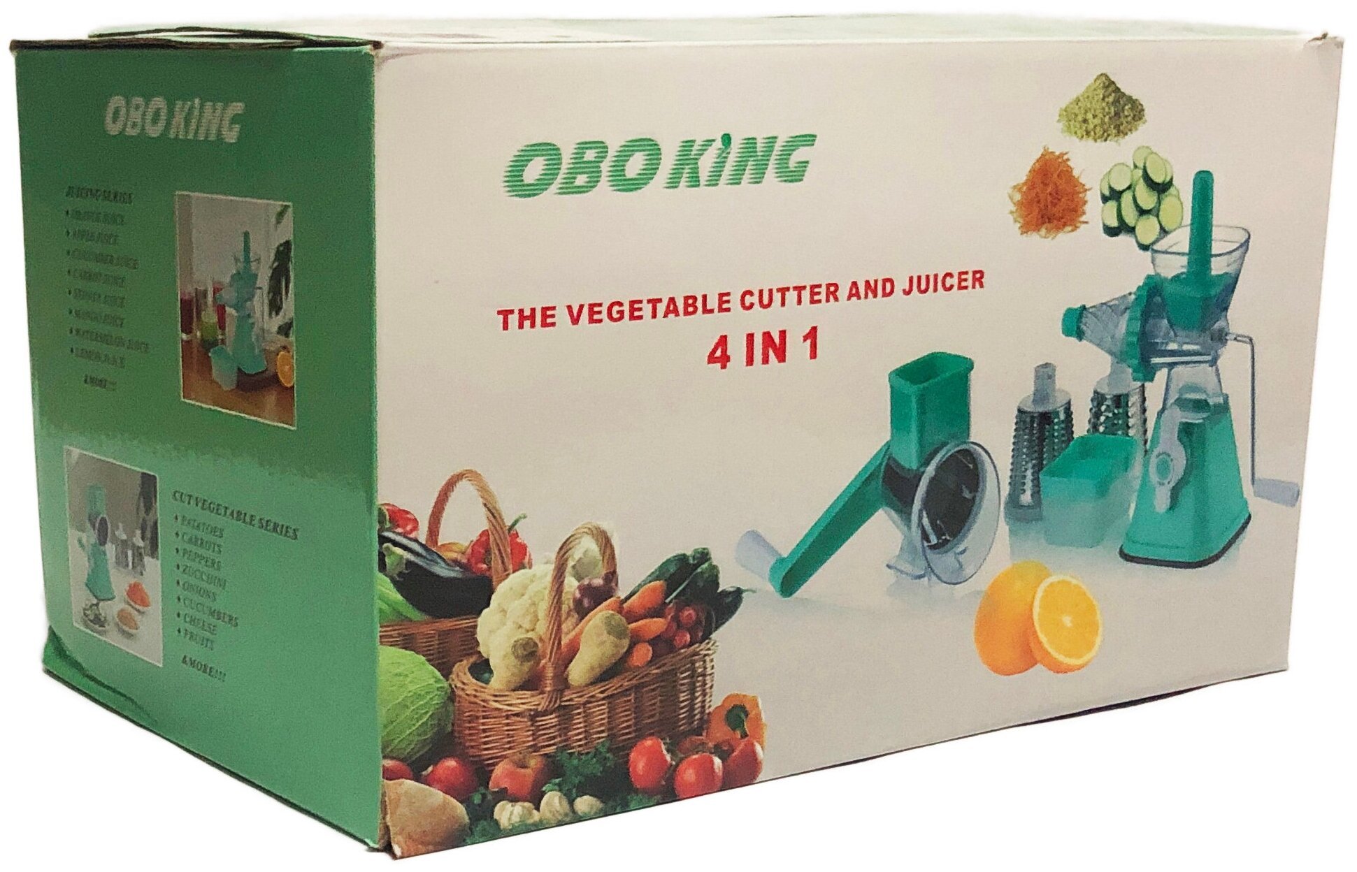 Комплектация:Корпус, 4 сменные насадки, крышка от брызг, контейнер под сок, толкушка, корпус, ручка, 2 сменные корпусные головыОписание:Реши все свои кухонные проблемы благодаря кухонному комбайну "OBOKING".Простота и удобство - главный принцип работы дан