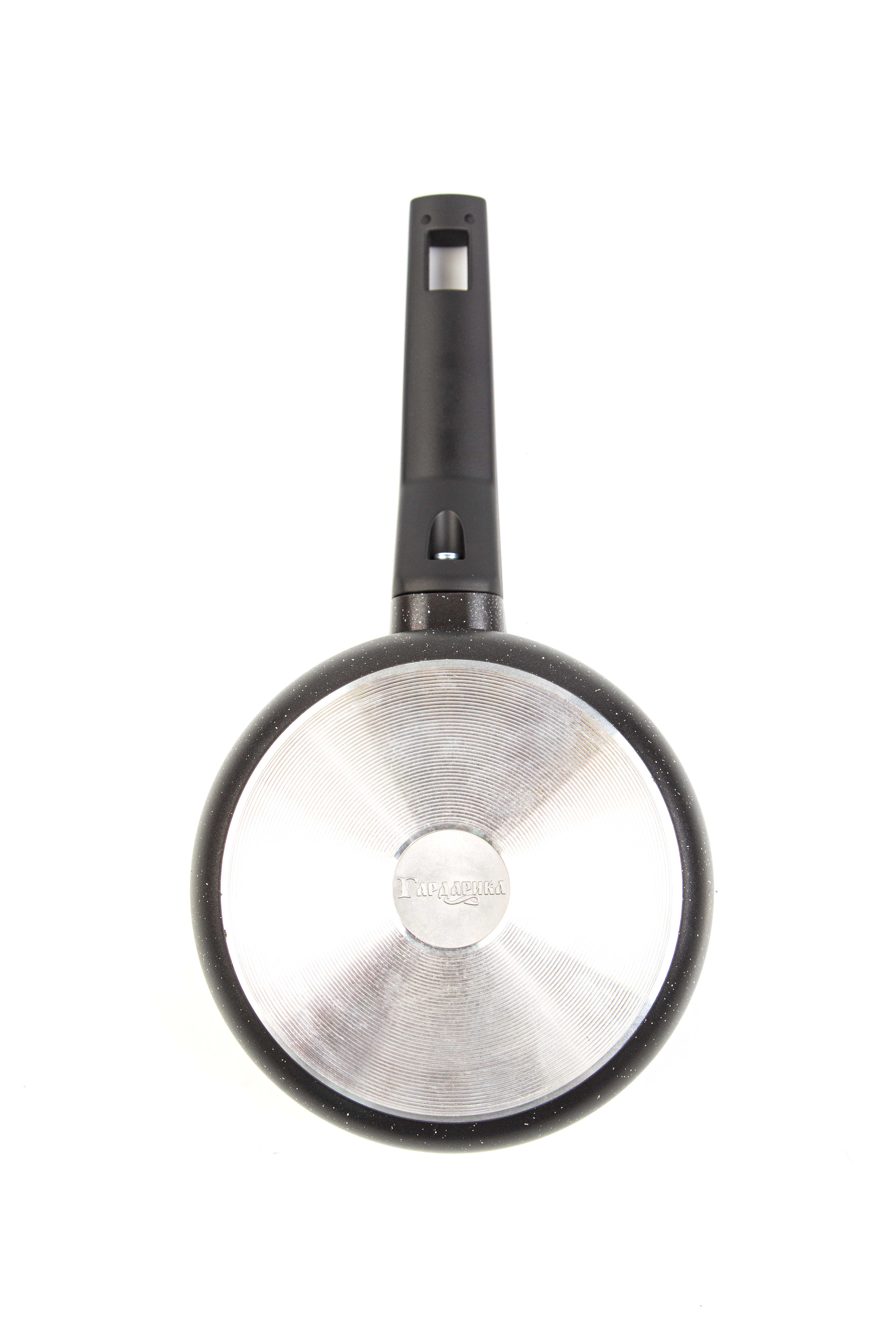 литой корпус из пищевого алюминиядвухслойное антипригарное покрытие от ведущих производителей на рынке АПтолстое дно, предотвращающее деформацию изделияусовершенствованная проточка дна, для равномерного нагреваклассический черный цветбакелитовая ручка с п