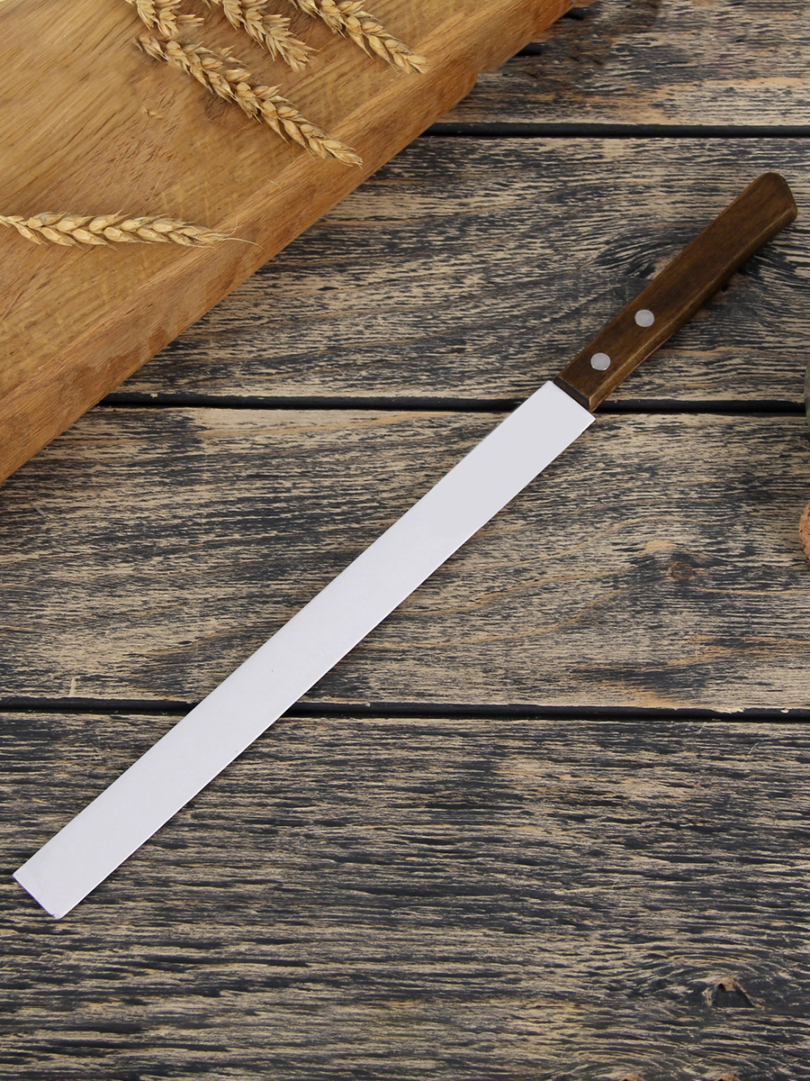 Нож для бисквита. Габариты: Длина 34 см., ширина 1,7 см., высота 1,5 см. Состав: Нержавеющая сталь;дерево.