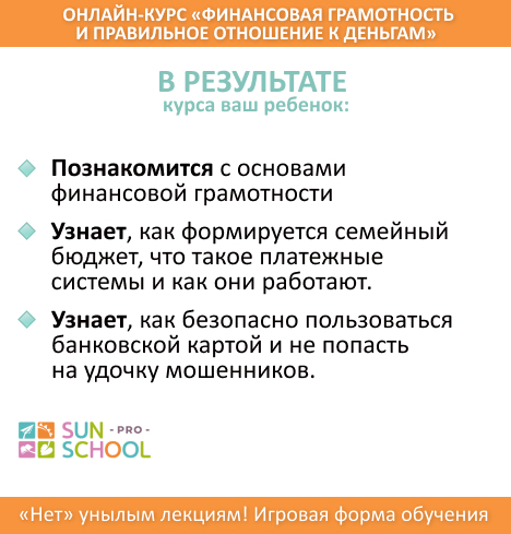 – Финансовое планирование.Конкурентные преимущества:• Вам не надо мотивировать ребенка на прохождение курса.