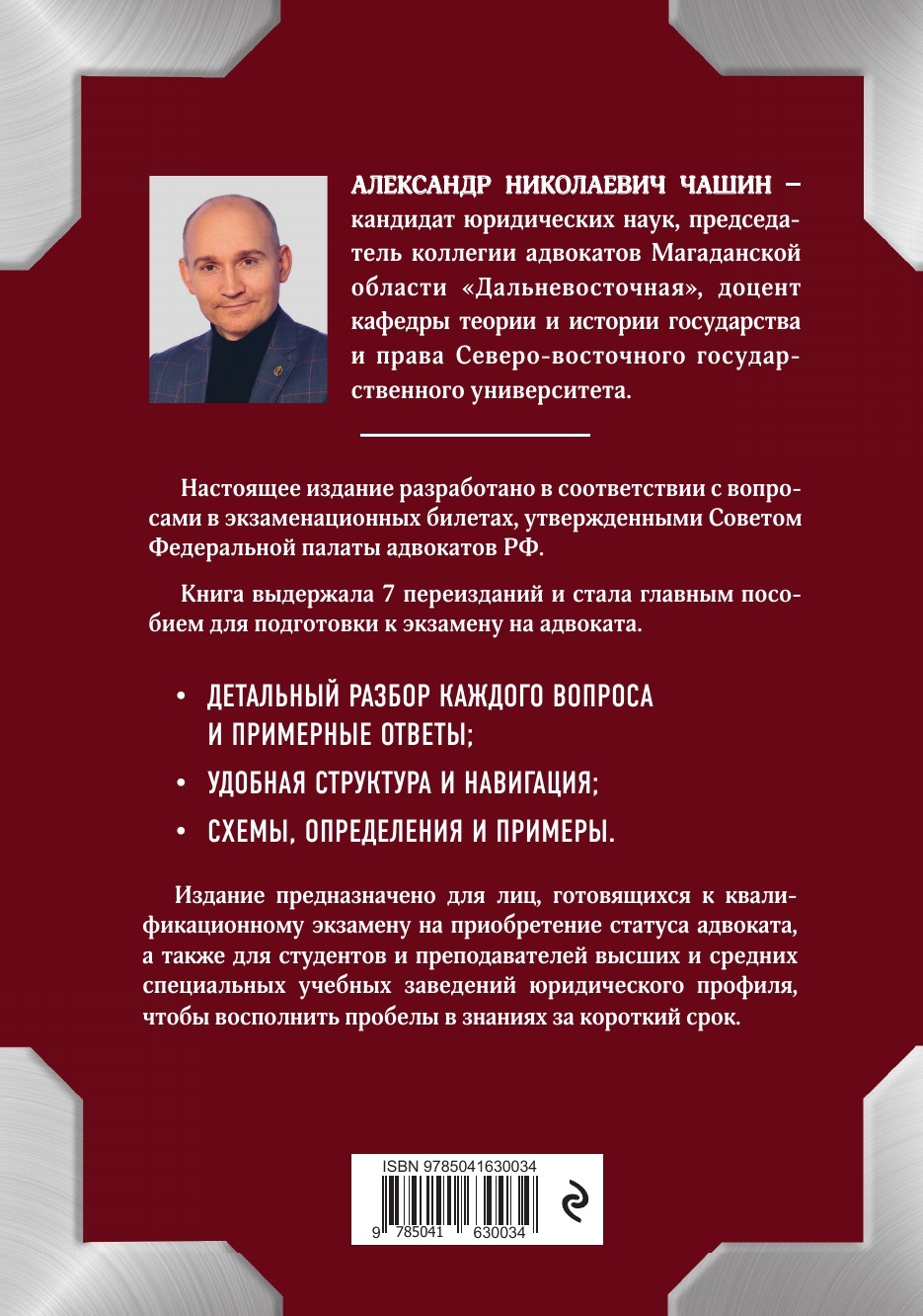 Настоящее издание разработано в соответствии с вопросами в экзаменационных билетах, утвержденными Советом Федеральной палаты адвокатов РФ. Книга выдержала 7 переизданий и стала главным пособием для подготовки к экзамену на адвоката. · Детальный разбор каж