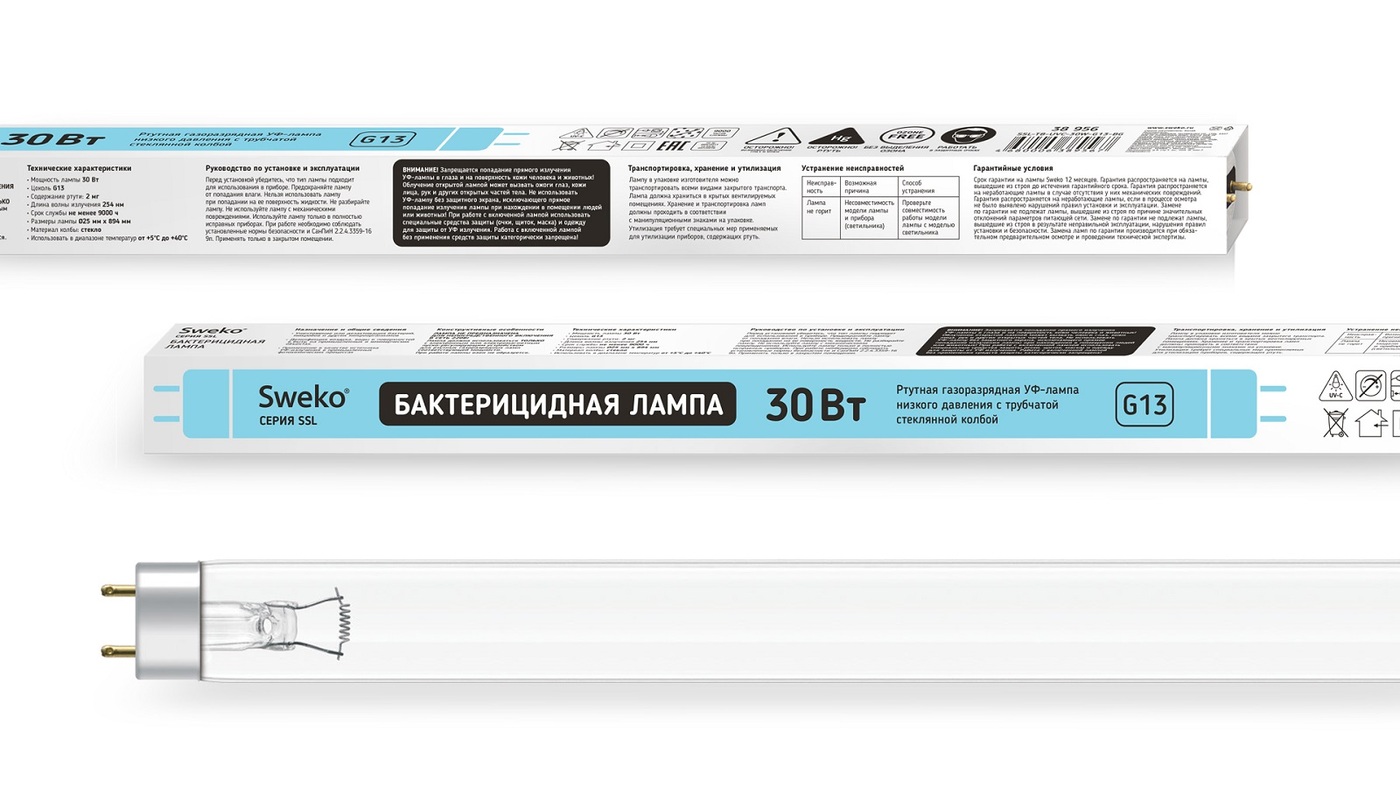Бактерицидные лампы SWEKO серии SSL UVC - ртутные газоразрядные УФ-лампы низкого давления с трубчатой стеклянной колбой.Лампы SWEKO SSL UVC безопасны для использования в бактерицидных приборах постоянного действия, устанавливаемых в закрытых помещениях с