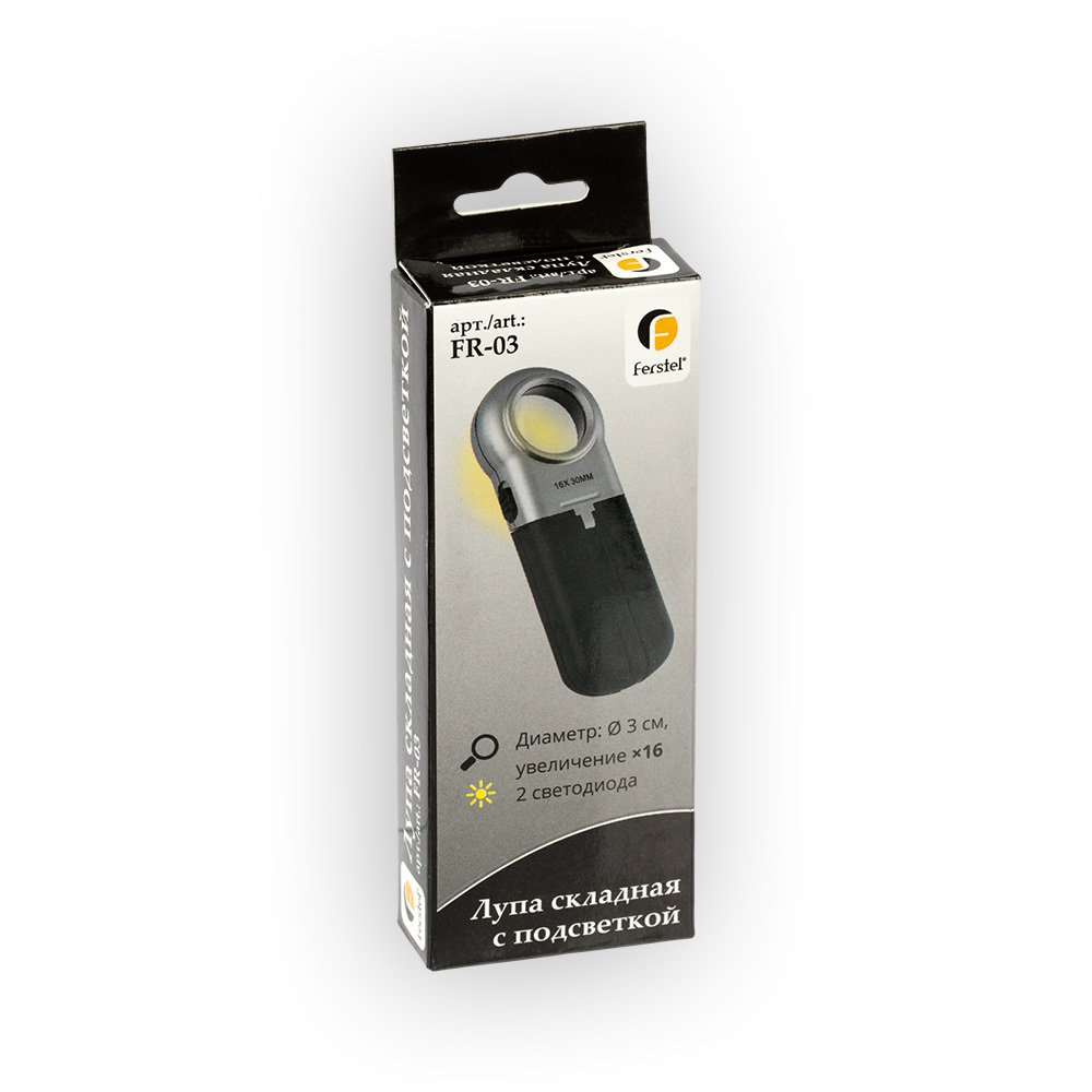 Комплектация:Складная лупа имеет высокую кратность - Х16, диаметр линзы - 3 см. Она удобна в работе с предметами маленьких размеров: для изучения страз, огранки камней, банкнот и марок. Корпус лупы, трансформируясь, может принимать форму ручки и подставк