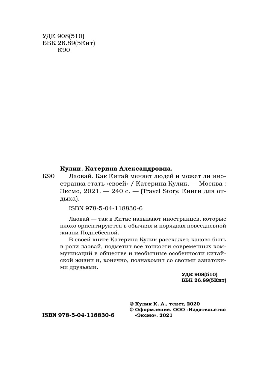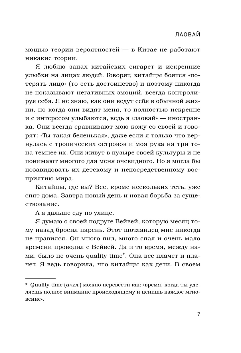 Лаовай — так в Китае называют иностранцев, которые плохо ориентируются в обычаях и порядках повседневной жизни Поднебесной. В своей книге Катерина Кулик расскажет каково быть в роли лаовай, подметит все тонкости современных коммуникаций в обществе и необы