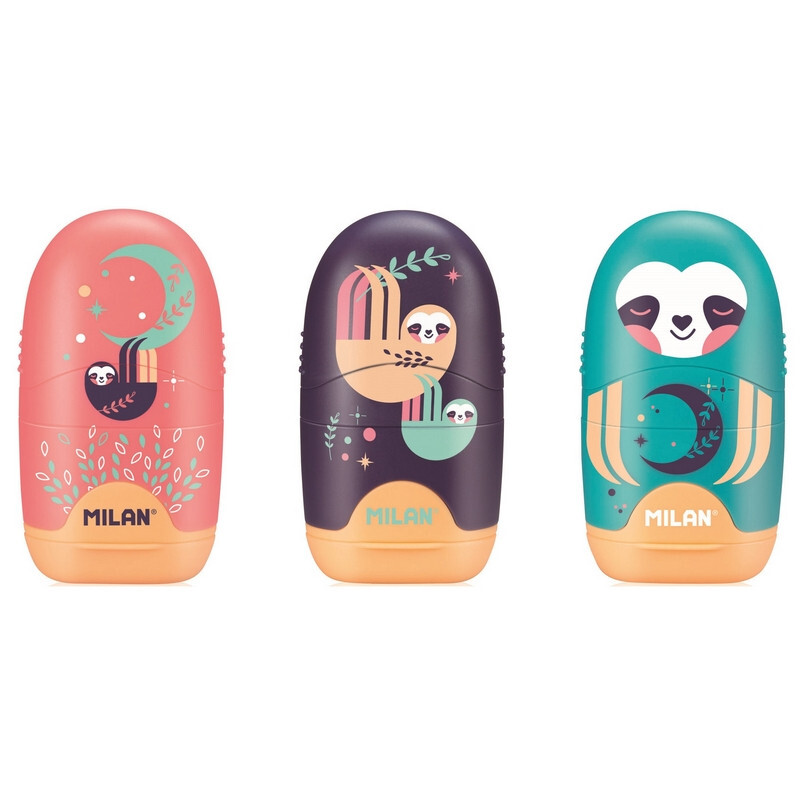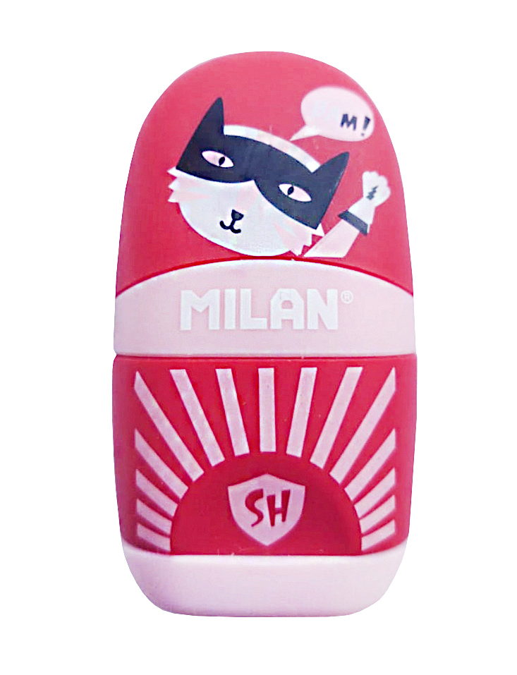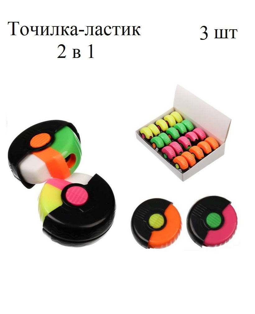 Ластик-точилка для карандашей. Точилка для карандашей имеет острое и прочное лезвие из углеродистой стали, что делает ее идеальной для всех видов карандашей. Имеет систему безопасных лезвий, которая предотвращает отсоединение лезвия от корпуса точилки для