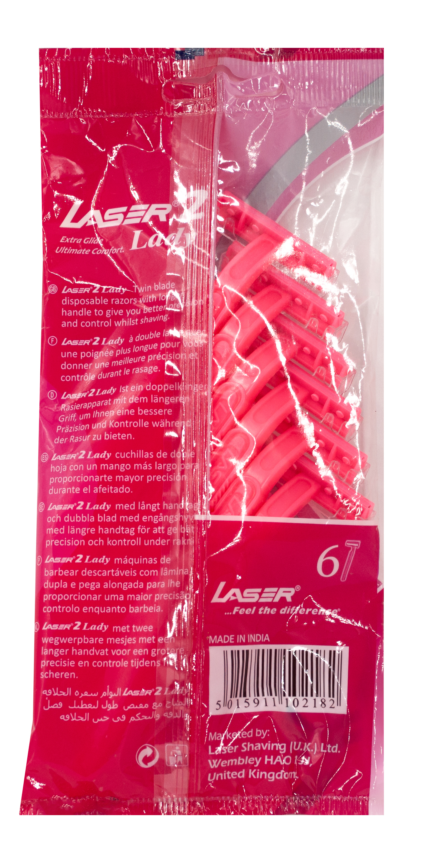 РАЗОВЫЕ БРИТВЫ С ДВОЙНЫМ ЛЕЗВИЕМ МАРКИ «LASER» («ЛАЗЕР») серии «LASER 2 LADY» («Лазер 2 Леди»)Одноразовые бритвы с двойным лезвием предназначены для абсолютно комфортного и чистого влажного бритья. Более длинная ручка обеспечивает лучшую точность и контро
