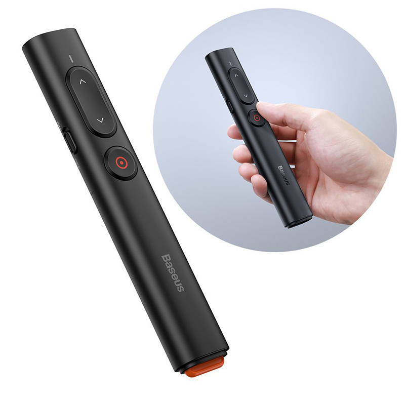 Комплектация:коробка; презентерОписание:Предлагаем вашему вниманию Baseus Orange Dot PPT wireless Presenter - лазерную указку и беспроводной пульт для управления показа электронных презентаций. Аксессуар работает без установки дополнительного программного