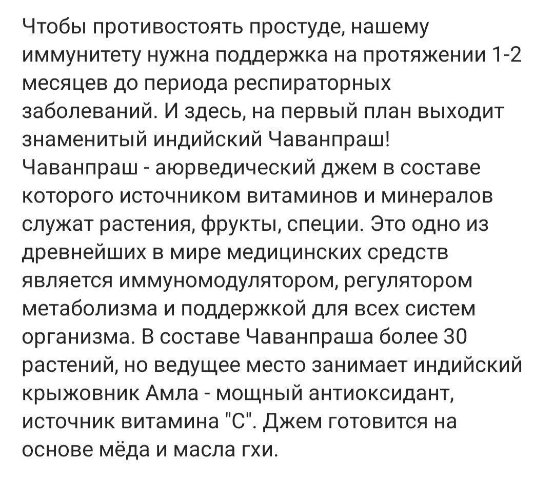 Состав:Мякоть амлы (приготовленная в настое из 35 лекарственных растений) 90 г. банслочан (10 г.), топленое масло (2,08 г.), кунжутное масло (2,08 г.), длинный перец (пиппали) (1,2 г.), бамбуковая манна (0,8 г.), кардамон (0,588 г.), гвоздика (0,128 г.),