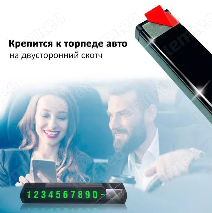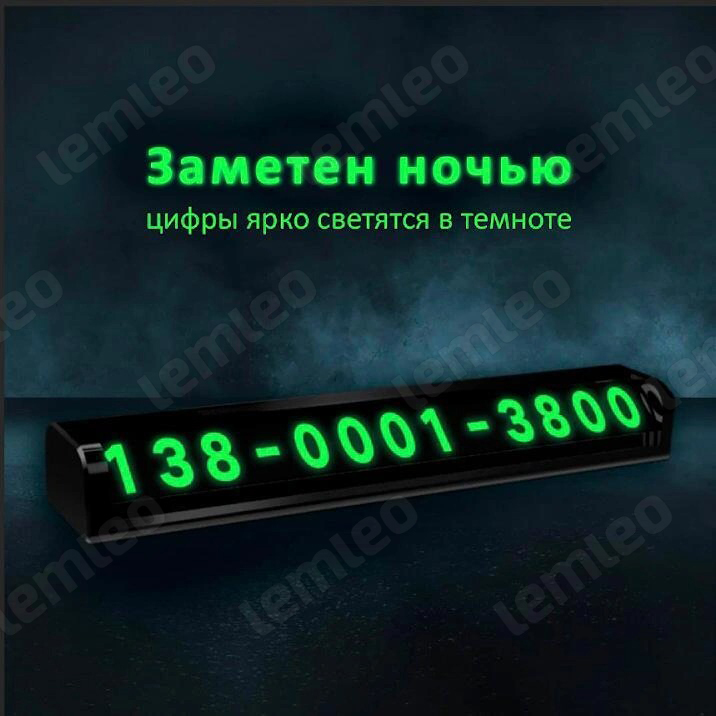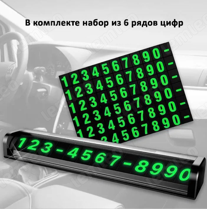 Комплектация:Автовизитка для номера телефона, 6 наборов цифрОписание:Автовизитка LEMLEO — отличный способ презентовать свой номер телефона. Полезное, стильное приспособление позволит быстро связаться с вами в том случае, если автомобиль мешает выезду.Табл