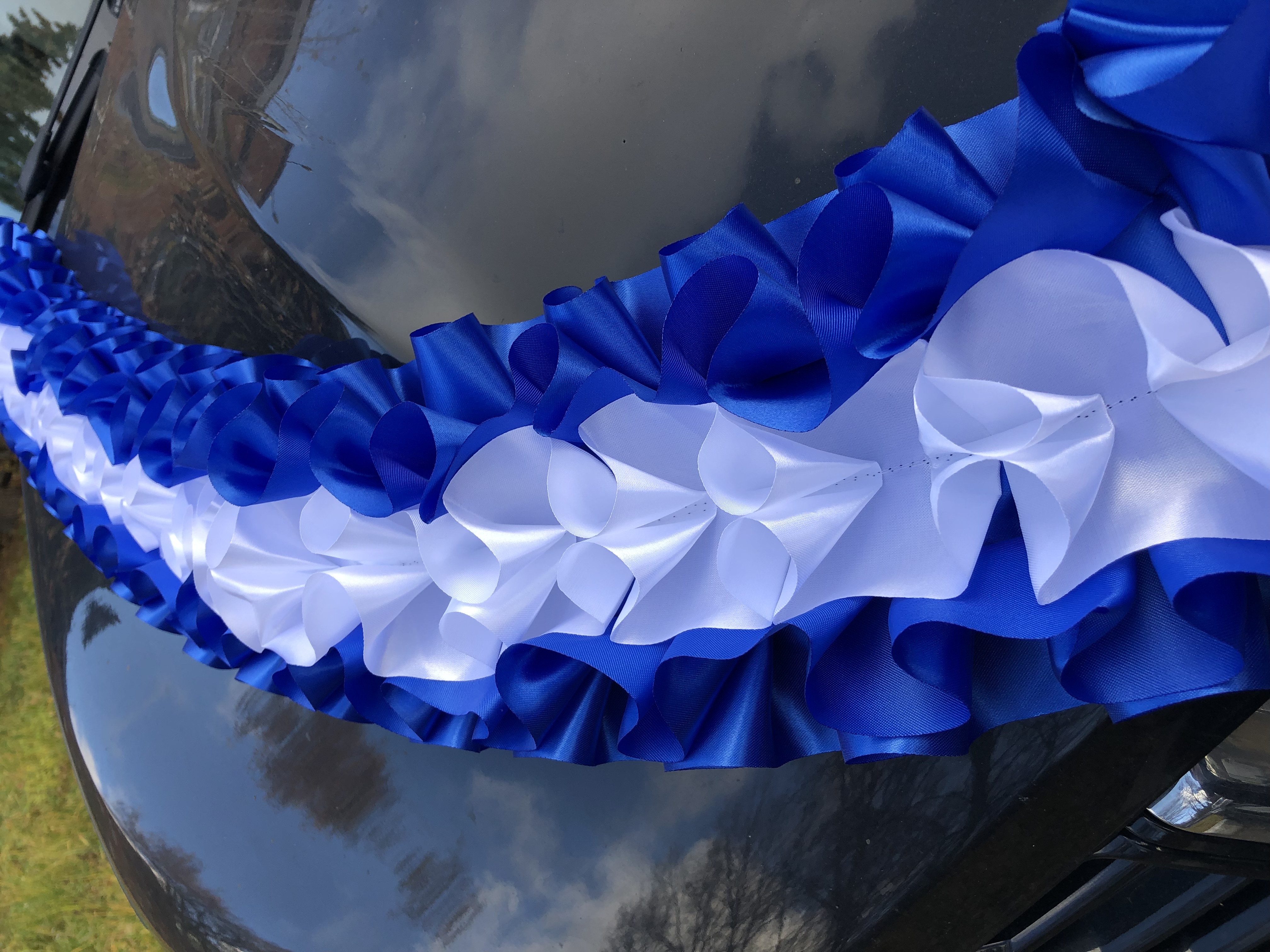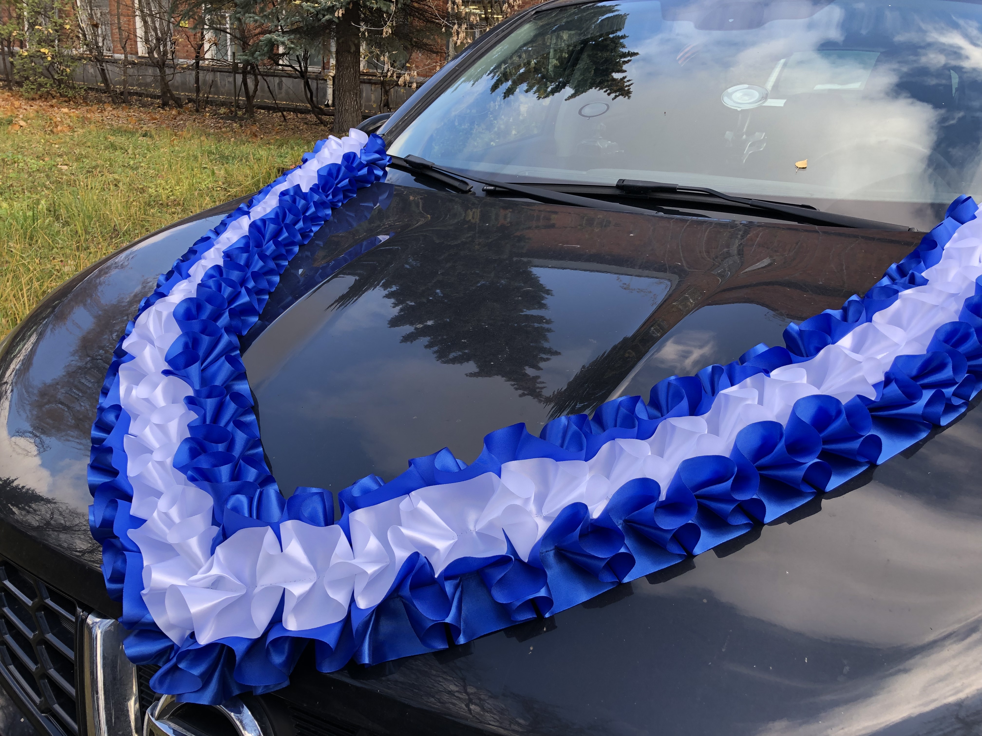 Лента д/авто "Трехрядная"Материал - атласДлина - 2,9 мШирина - 15 смКатегория декора - ЭкономОбъемная лента для оформления свадебного авто как главных машин,так и гостевых. Образец крепления данной модели ленты на фото в профиле товара. Также имеет широко