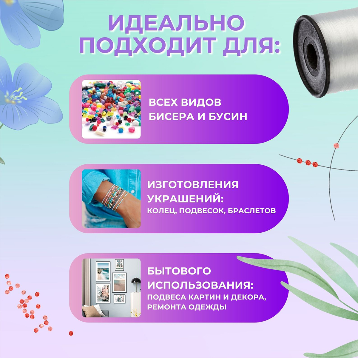 Леска для бисера - необходимый элемент для создания браслетов, бус, фенечек, колец и других украшений. Данная леска подойдет для рукоделия как взрослым, так и детям. Мононить на 100% состоит из нейлона, поэтому отлично держит форму. Неэластичная, устойчив