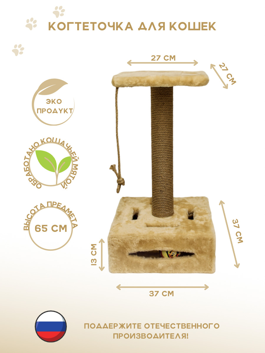 Комплектация:Когтеточки столбики - 2 шт. Лежанка - 1 шт. Шар игрушка - 1 шт. Когтеточка доска - 1 шт.