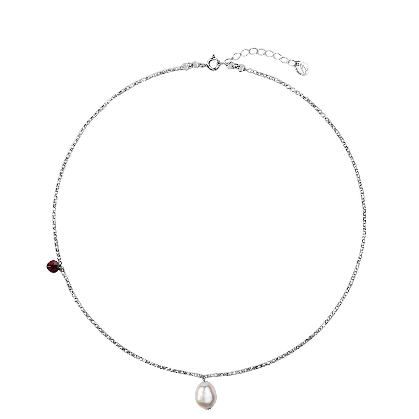 Комплектация:1 цепочка-подвеска в фирменной подарочной упаковкеОписание:Короткая, изысканная серебряная цепь-подвеска с натуральным барочном жемчугом высокого качества и гранатом в ювелирной огранке. Модель подвески ассиметричная, очень деликатная, подход