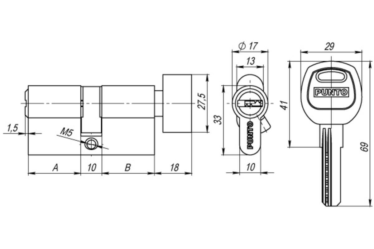 Цилиндровый механизм Punto коллекции SIMPLE LIVING A202 предназначен для установки в корпуса врезных цилиндровых замков для всех типов дверей.Вариант исполнения: ключ-вертушка. Тип ключа: "перфорированный". Материал изготовления цилиндра: алюминий. Матери