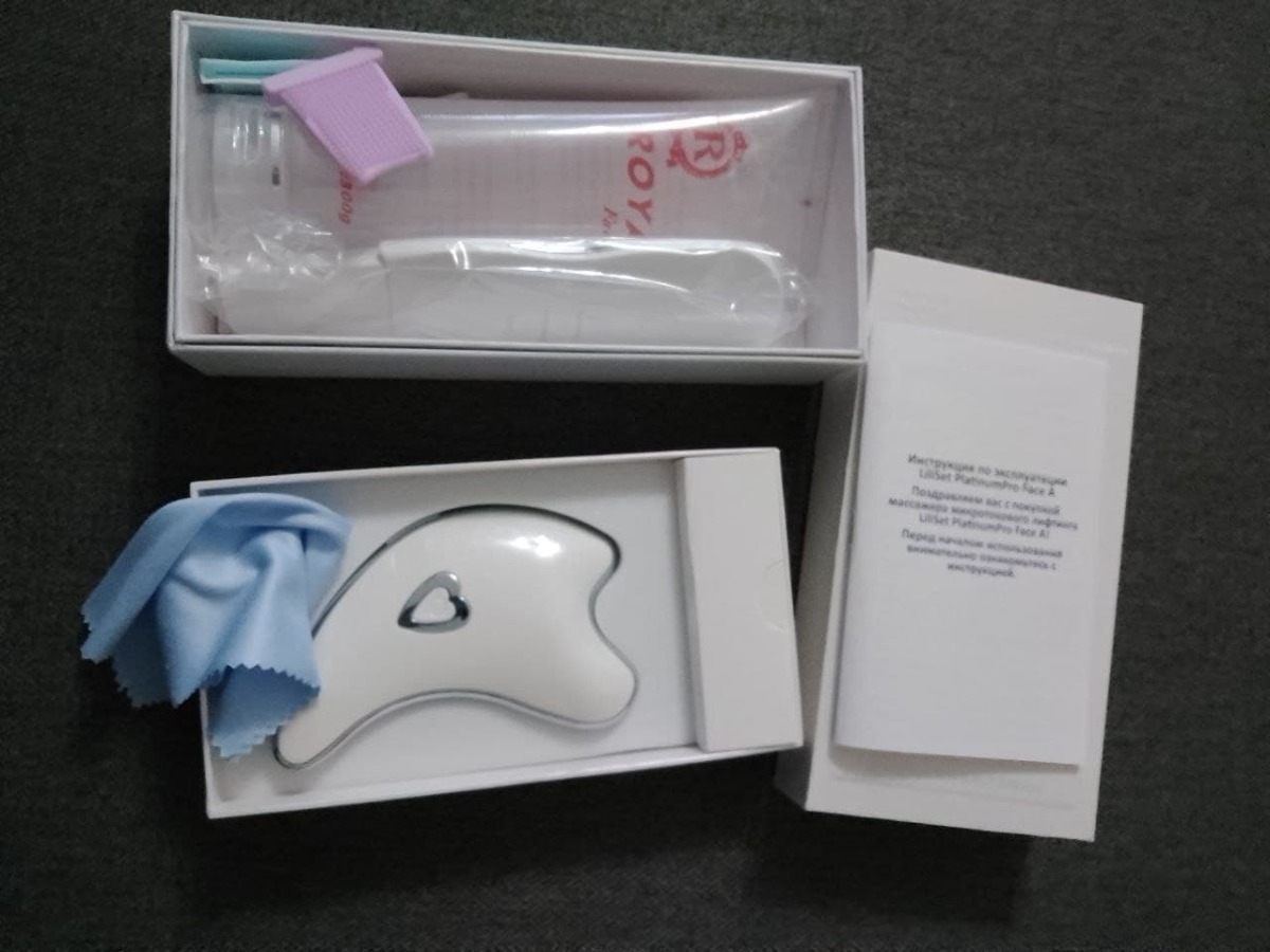 Комплектация:Аппарат для УЗ-чистки, 2 силиконовые насадки, шнур для зарядки, гель; массажер, инструкции, кабель microUSB, салфетка.Описание:В набор входит:1. Массажер микротокового лифтинга PlatinumPro Face A: RF лифтинг, миостимуляция, микротоковая терап