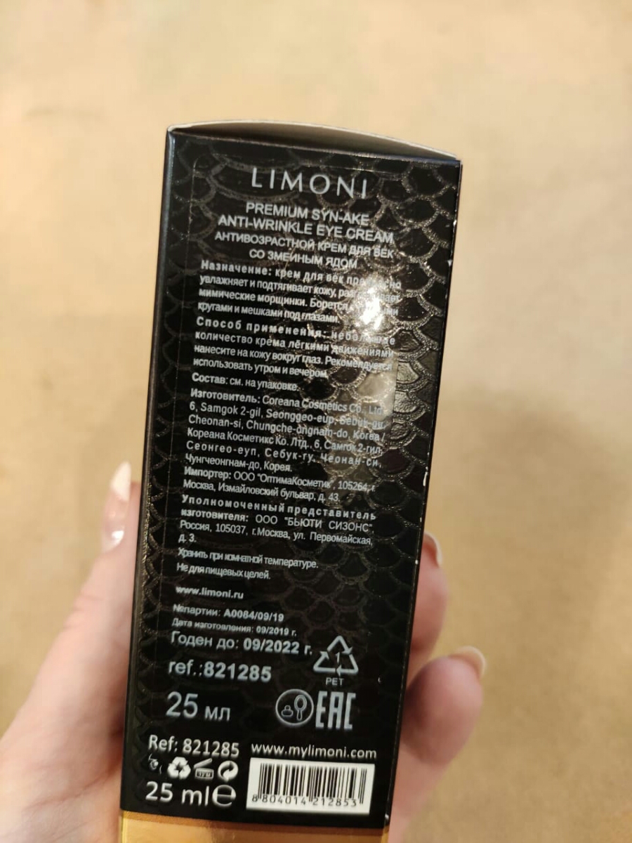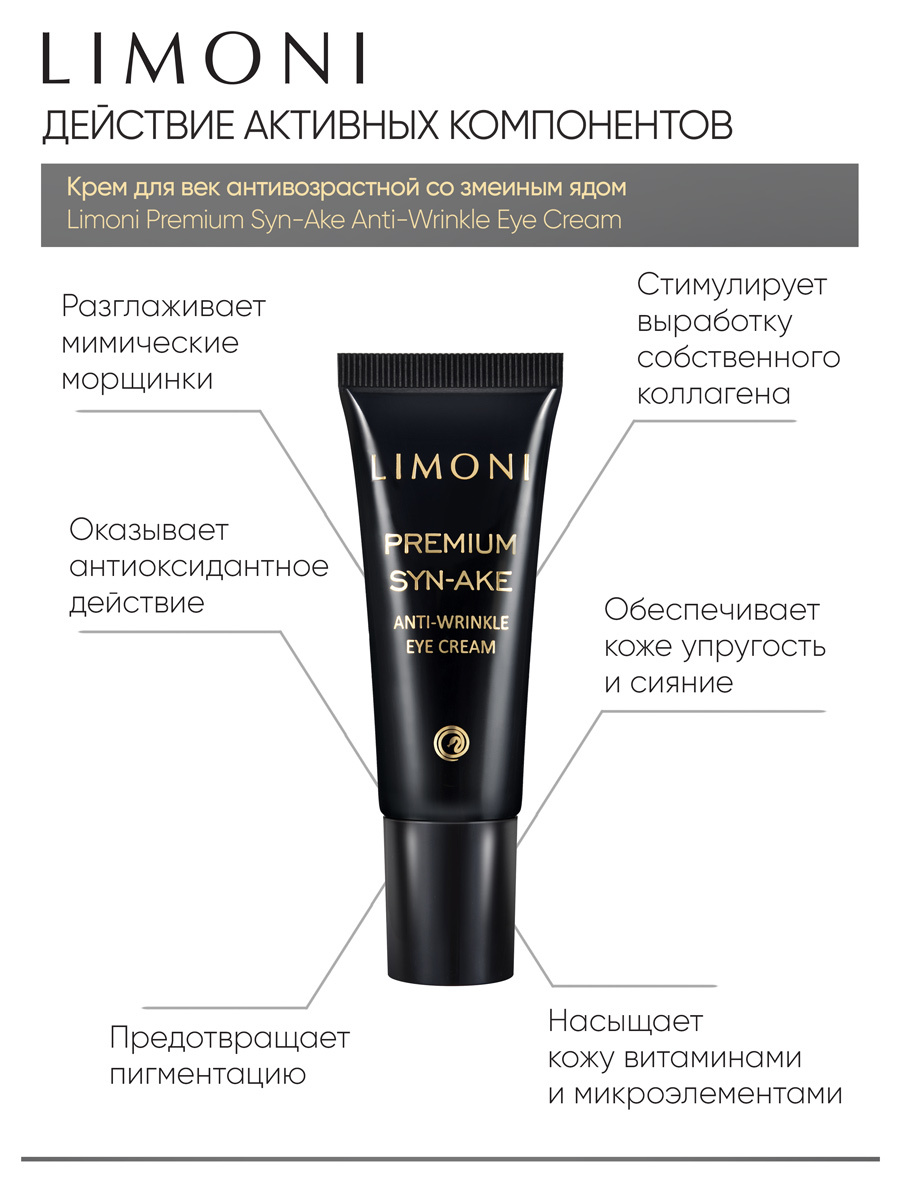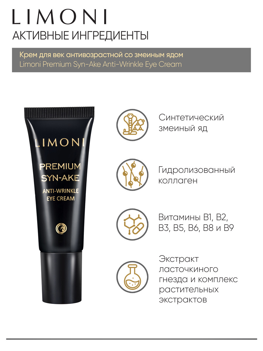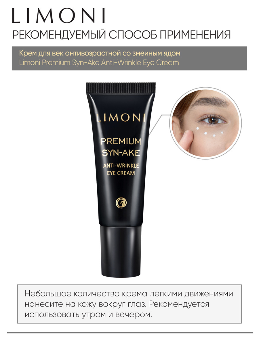 ВариантLIMONI Крем для век Корея антивозрастной против морщин и темных кругов под глазами со змеиным ядом Premium Syn-Ake Anti-Wrinkle Eye Cream 25 мл