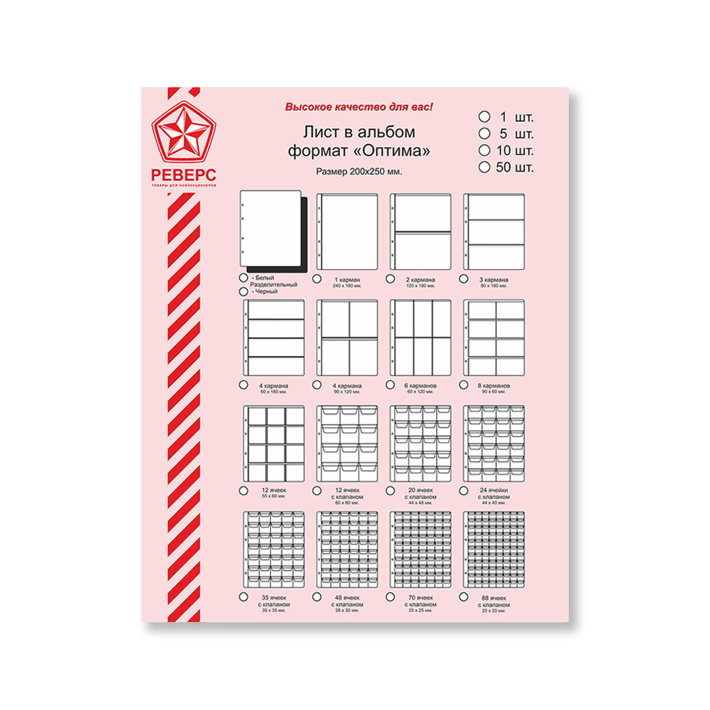 Лист разделительный черный формат Оптима (Optima). Лист изготовлен из ПВХ пленки.Размер листа: 250х200 мм.В упаковке: 1 шт.