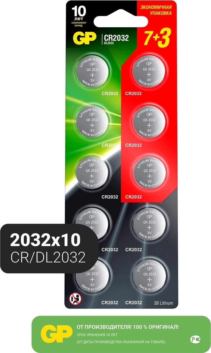 Литиевые батарейки GP CR2032(3V), 1 шт. (CR2032-CR1)