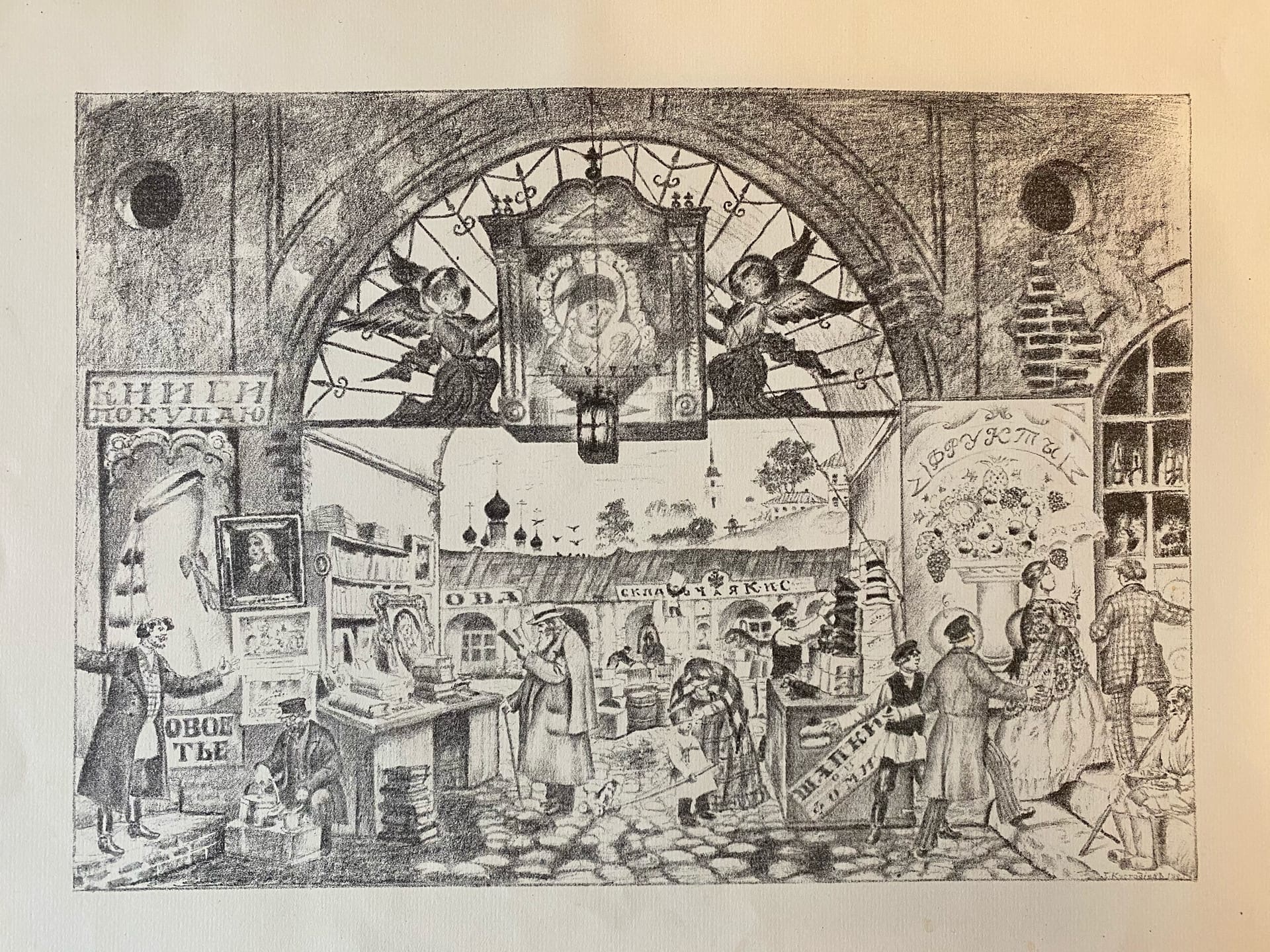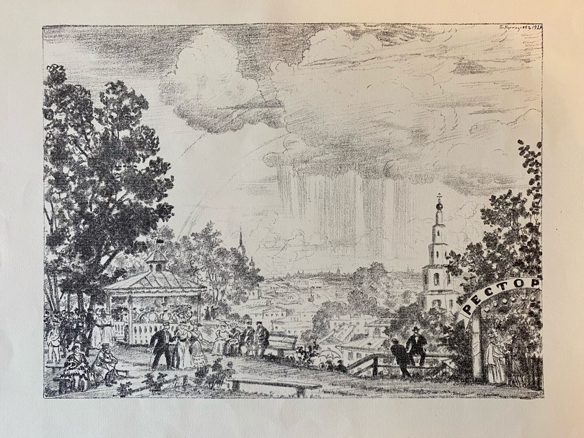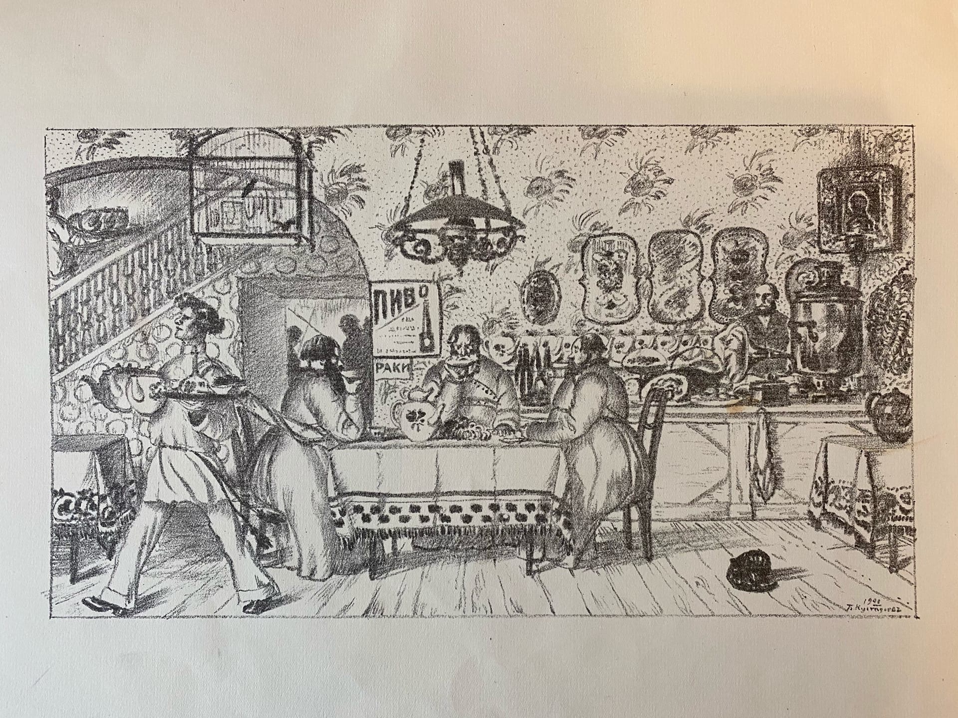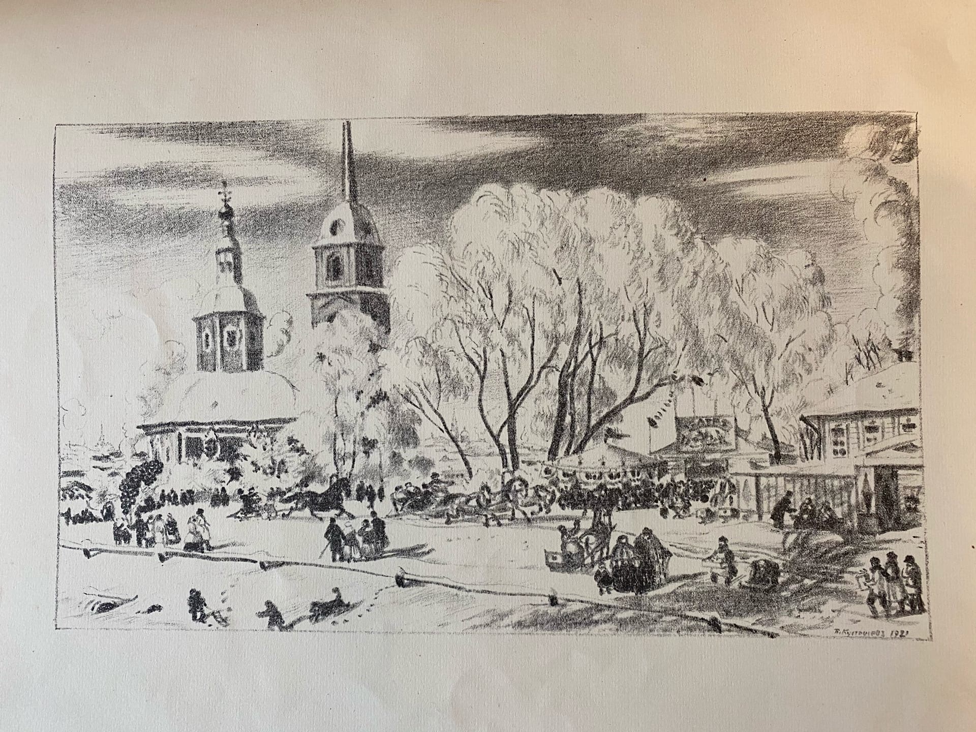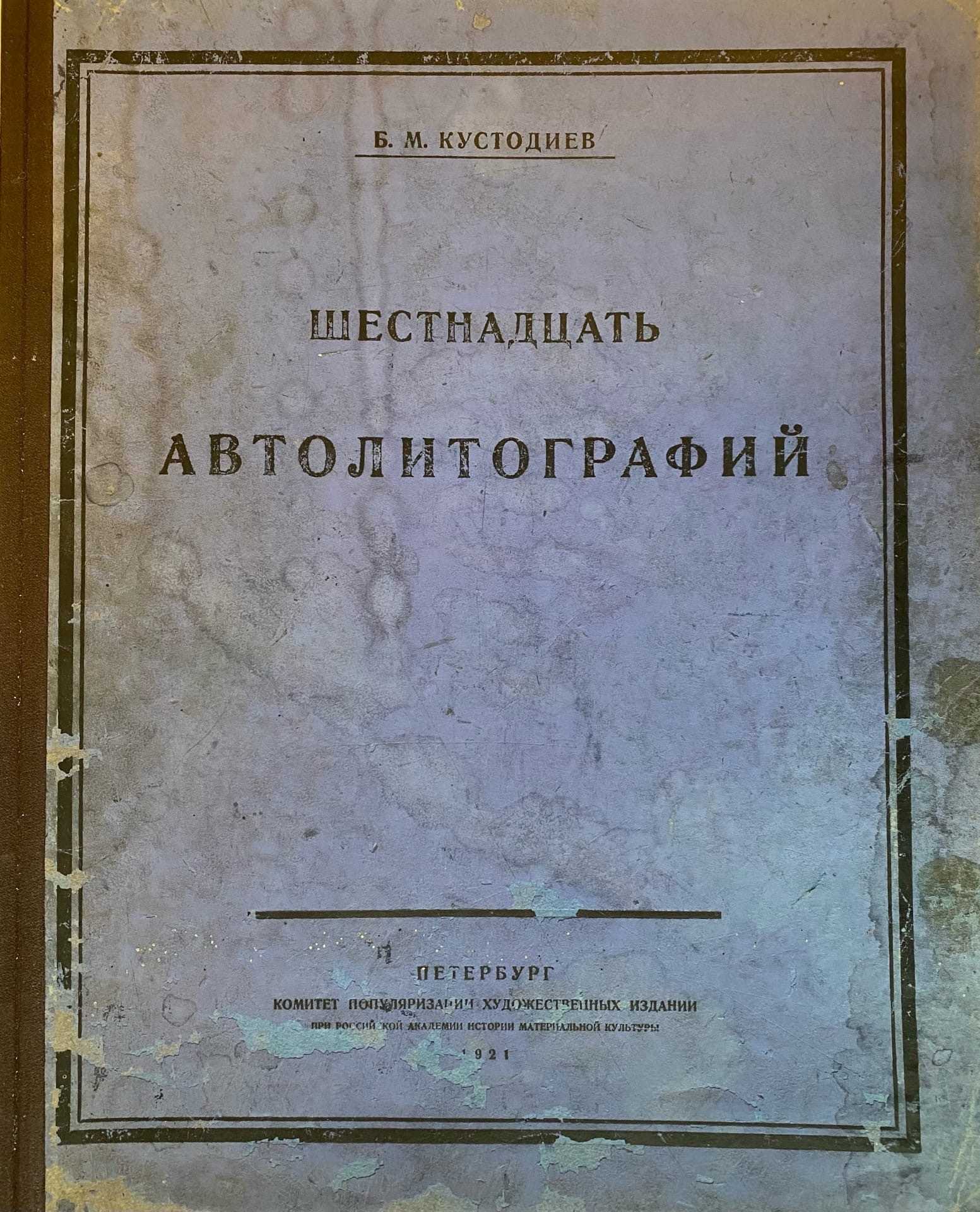 КУСТОДИЕВ Б.М.(1878–1927) Шестнадцать автолитографий. [Альбом].1921 г.КУСТОДИЕВ Борис Михайлович (1878–1927) Шестнадцать автолитографий. [Альбом]. Полный комплект. — П.: Комитет популяризации художественных изданий при Российской академии истории материал
