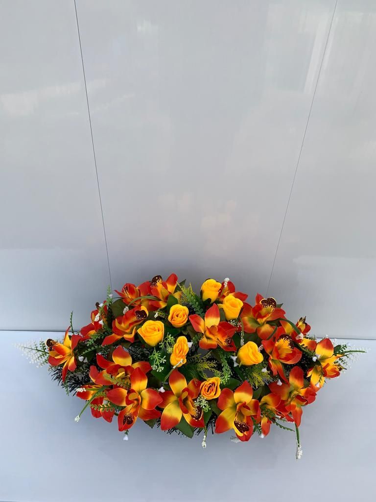 ТипТраурный венок, Корзина ритуальная с искусственными цветами, Траурный букет