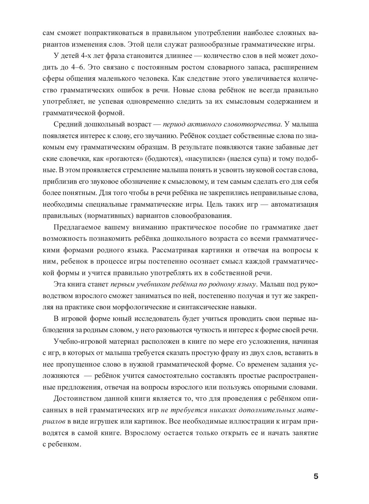 Книга известного логопеда О. А. Новиковской позволяет в игровой форме познакомить детей дошкольного возраста со всеми грамматическими формами русского языка. В процессе игры ребенок осознает смысл грамматической формы и учится правильно употреблять ее в с